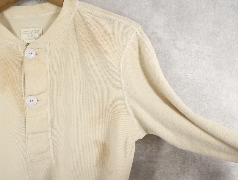 70's U.S.ARMY 猫目ボタン ヘンリーネックアンダーシャツ SMALL [160464]