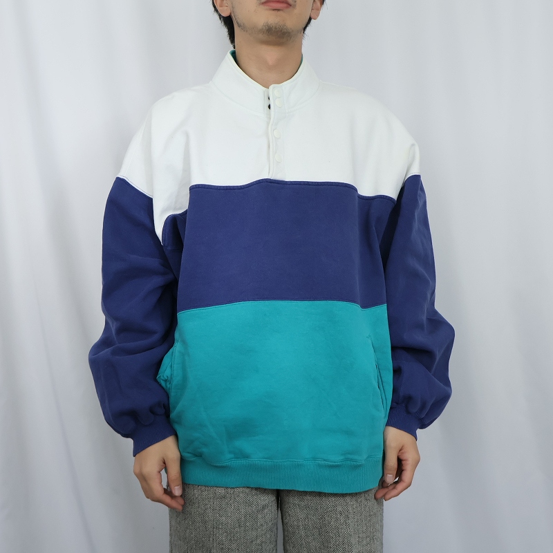 80〜90's Eddie Bauer 切り替えデザイン ハーフスナップスウェット L [160470]