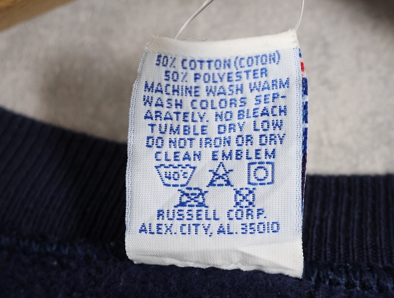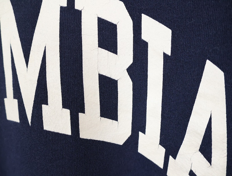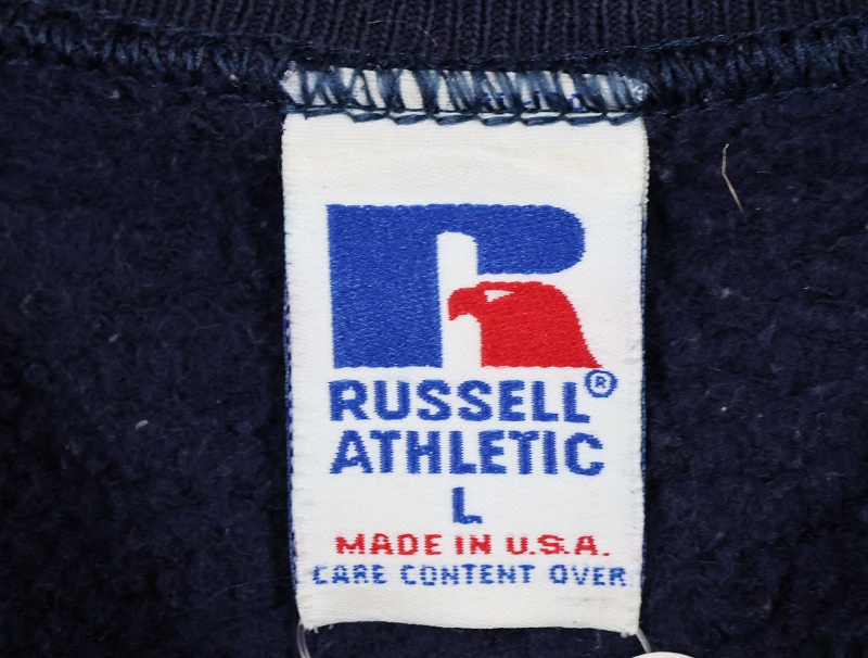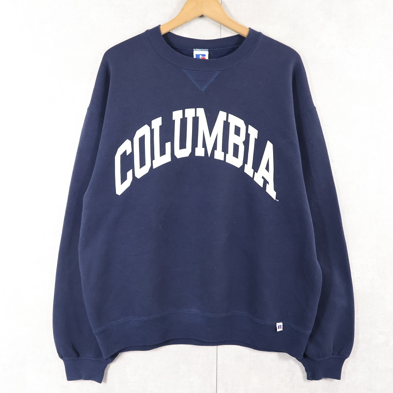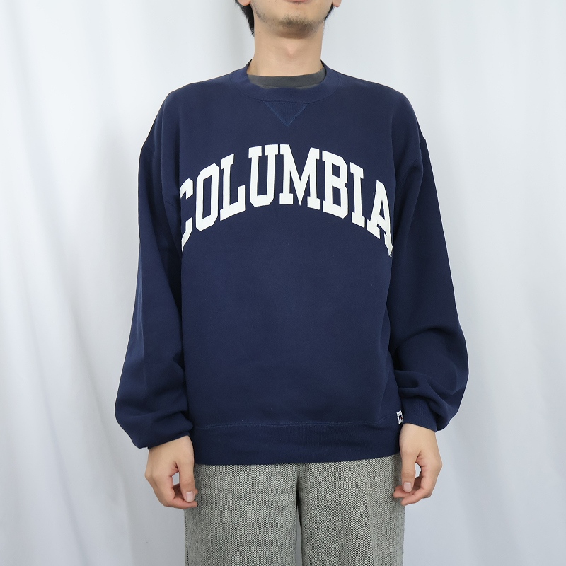 90's RUSSELL ATHLETIC USA製 "COLUMBIA" 前V プリントスウェット NAVY L [160472]
