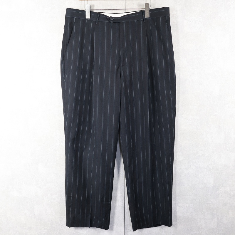 ストライプ柄 1タックスラックス BLACK W38 [160473]