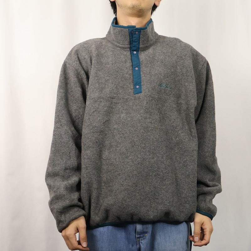 80〜90's L.L.Bean USA製 筆記体ロゴ刺繍 ハーフスナップフリースジャケット L [160478]