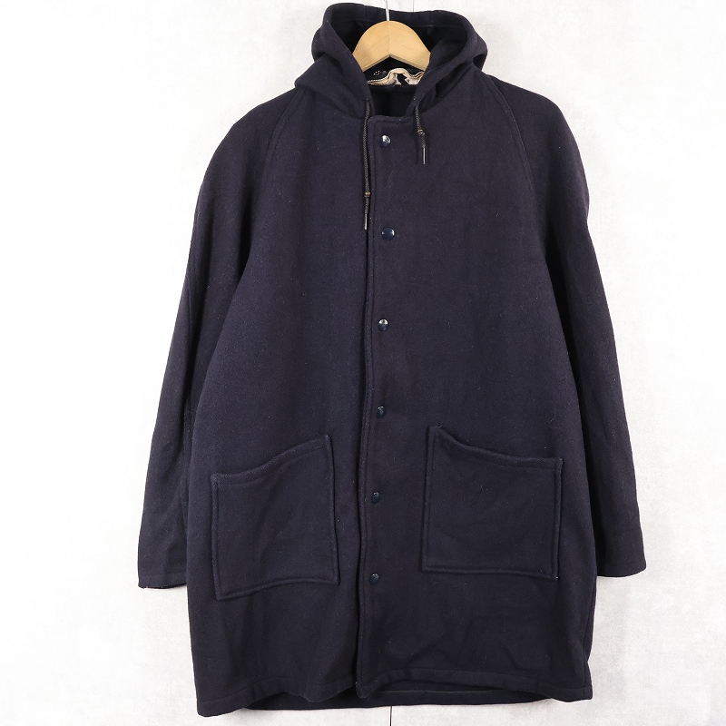 〜70's フード付き スナップボタンウールコート NAVY [160494]