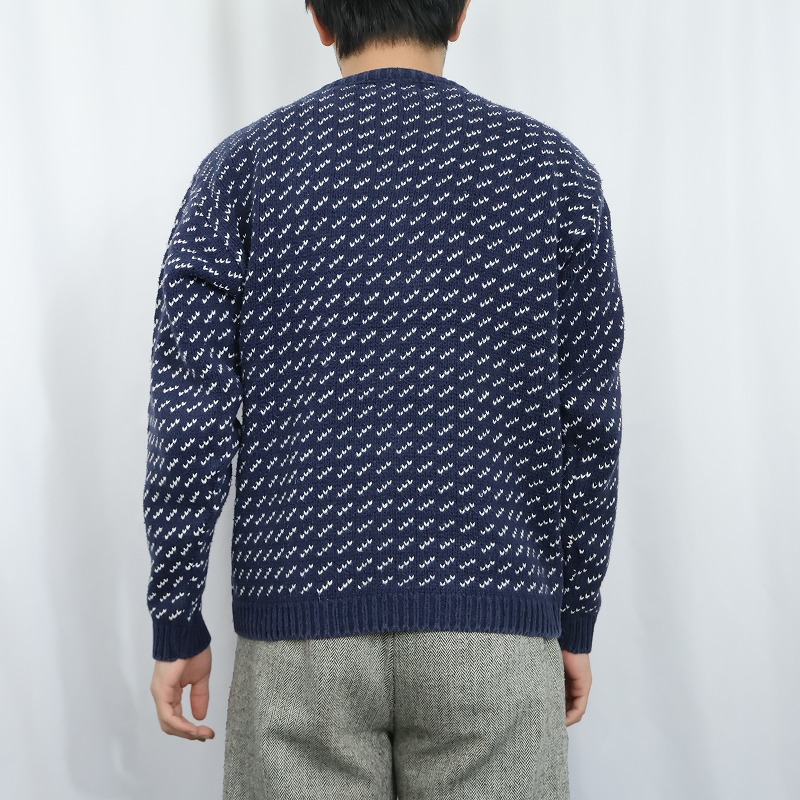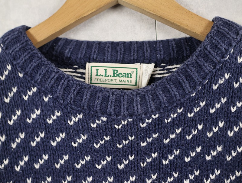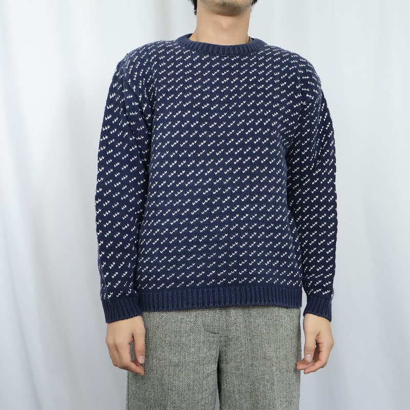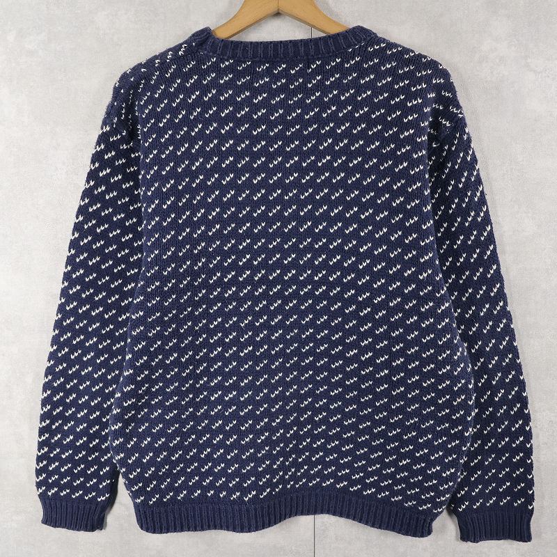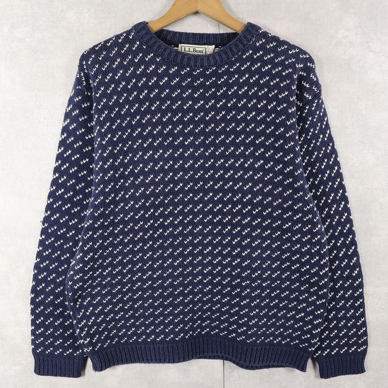 80〜90's L.L.Bean バーズアイ柄 ウールニットセーター NAVY XL [160500]