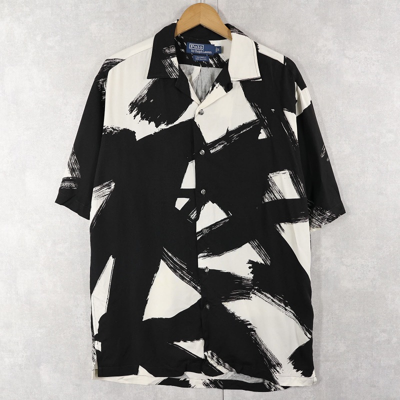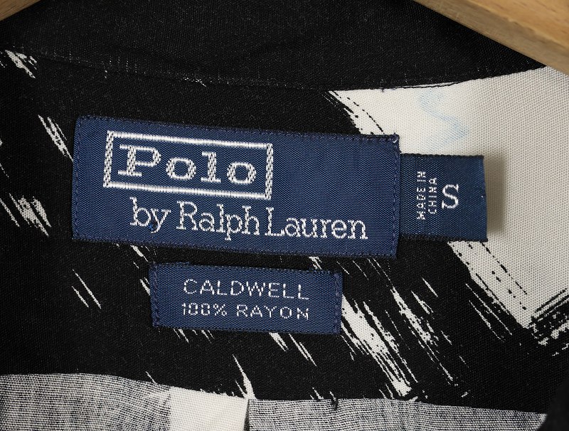 90's POLO Ralph Lauren "CALDWELL" 筆柄 レーヨンオープンカラーシャツ S [160507]