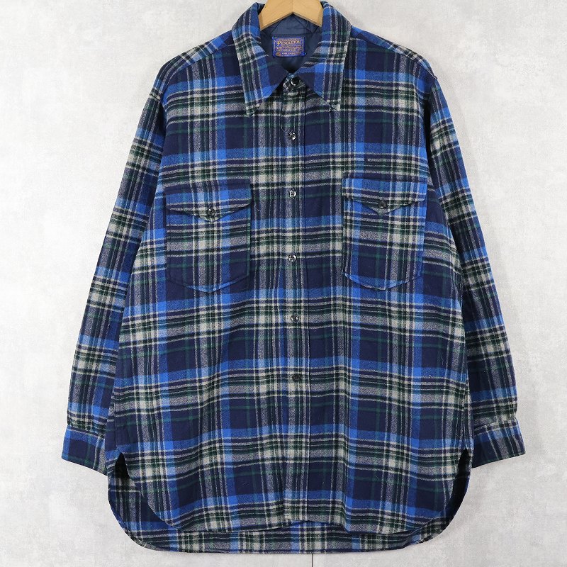 70's PENDLETON USA製 チェック柄 ウールシャツ SIZE17 1/2 [160520]