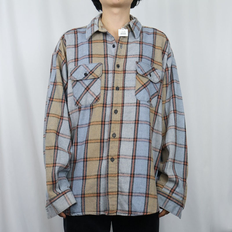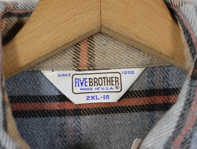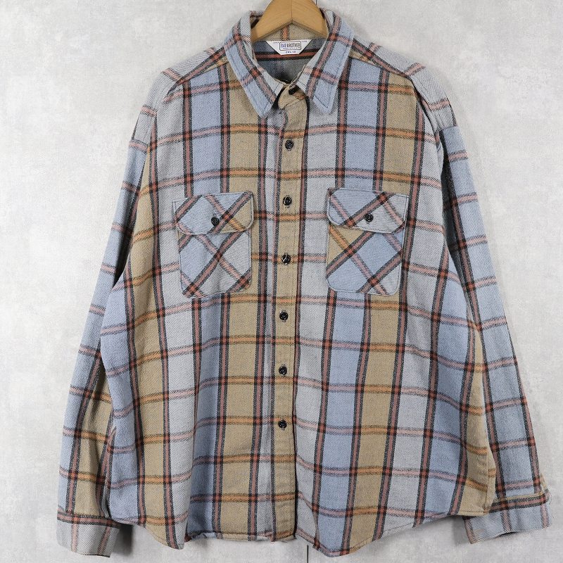 70〜80's FIVE BROTHERS USA製 チェック柄 ヘビーネルシャツ 2XL [160521]