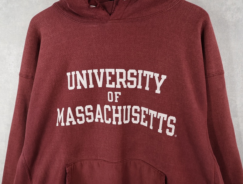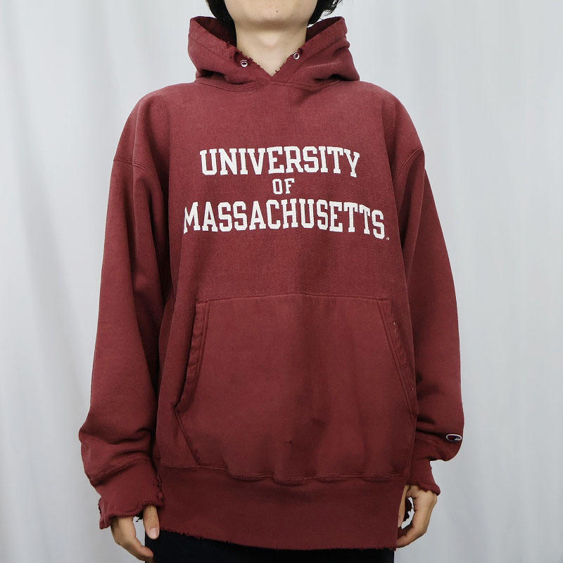 Champion REVERSE WEAVE "UNIVERSITY OF MASSACHUSETTS" プリントスウェットフーディー XL [160524]