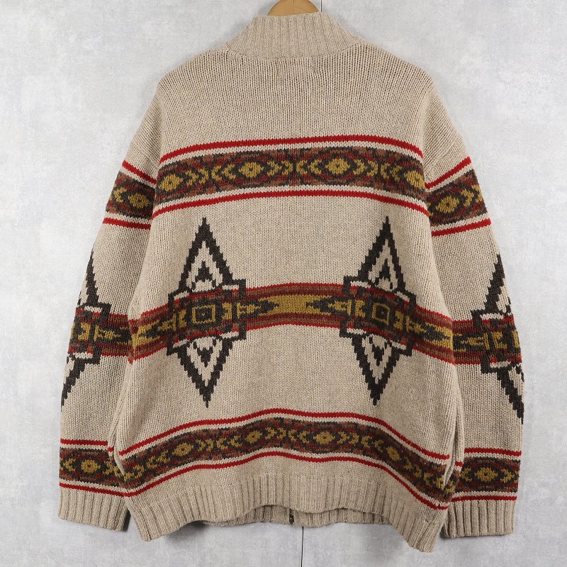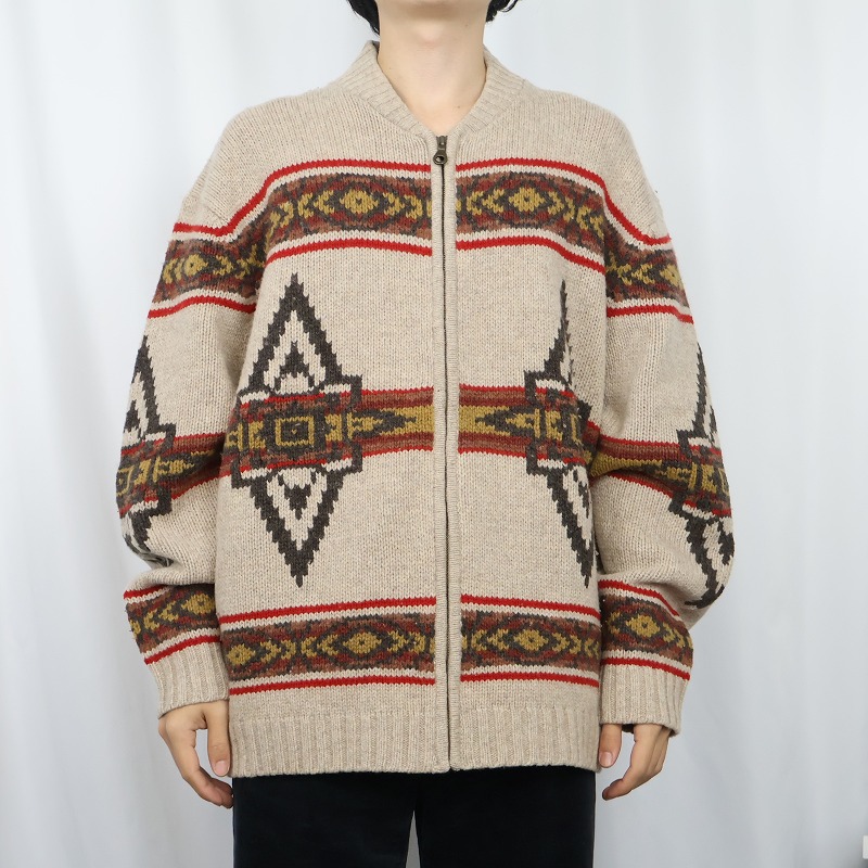 PENDLETON ネイティブ柄 ウールニットジップジャケット XL [160534]