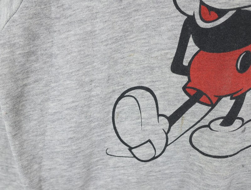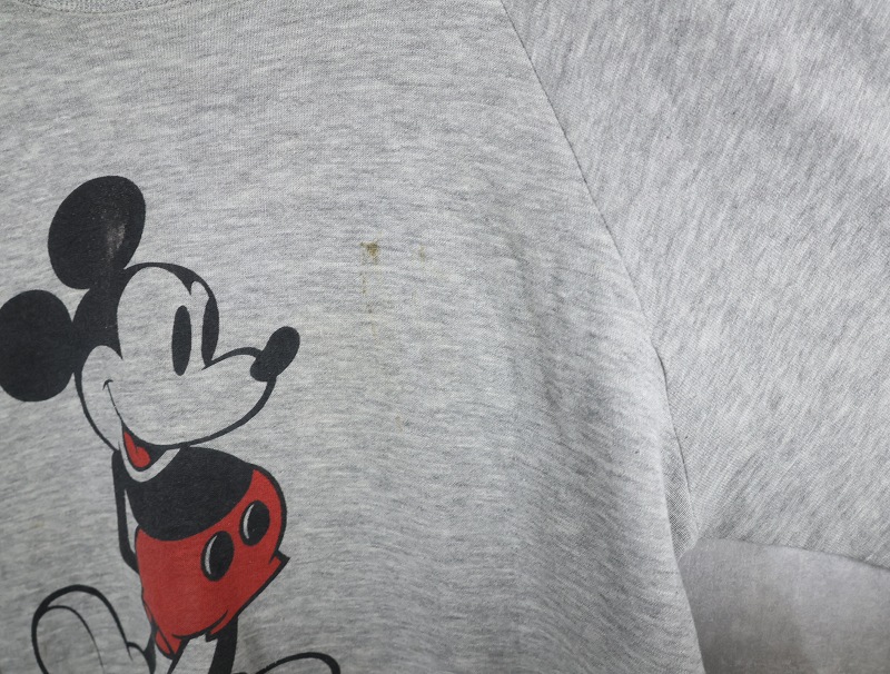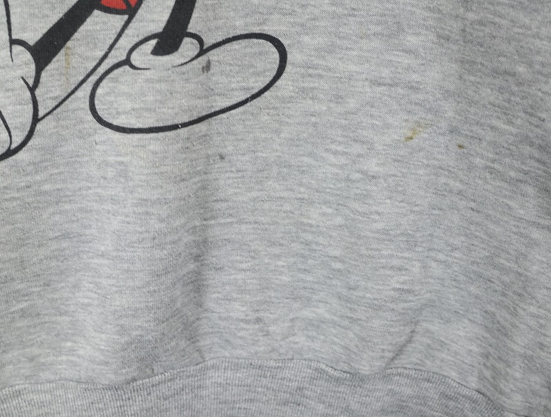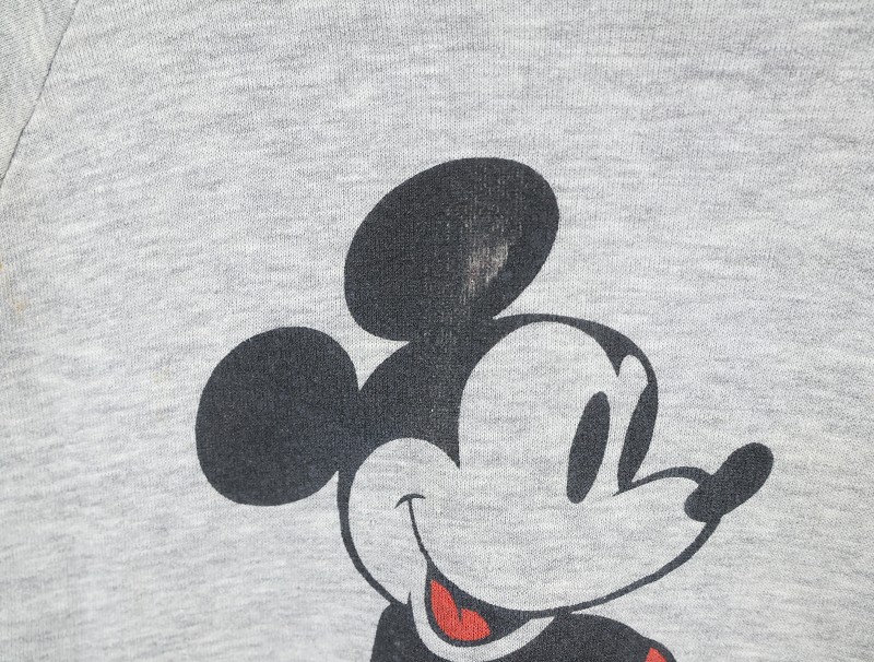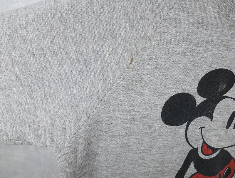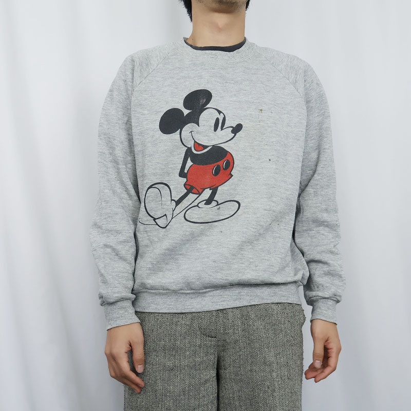 80〜90's Disney MICKEY MOUSE USA製 白靴ミッキー キャラクタープリントラグランスウェット L [160537]
