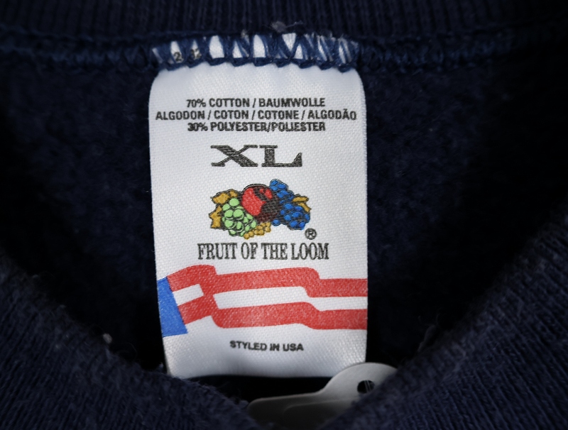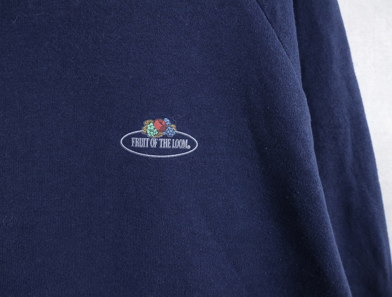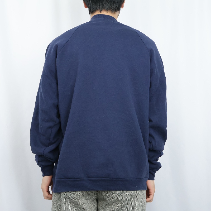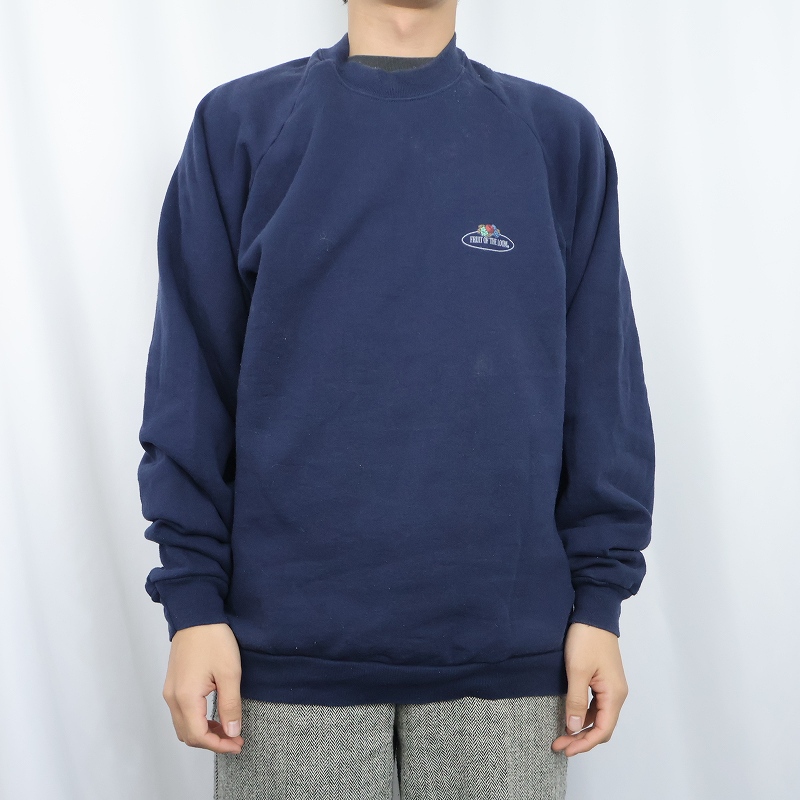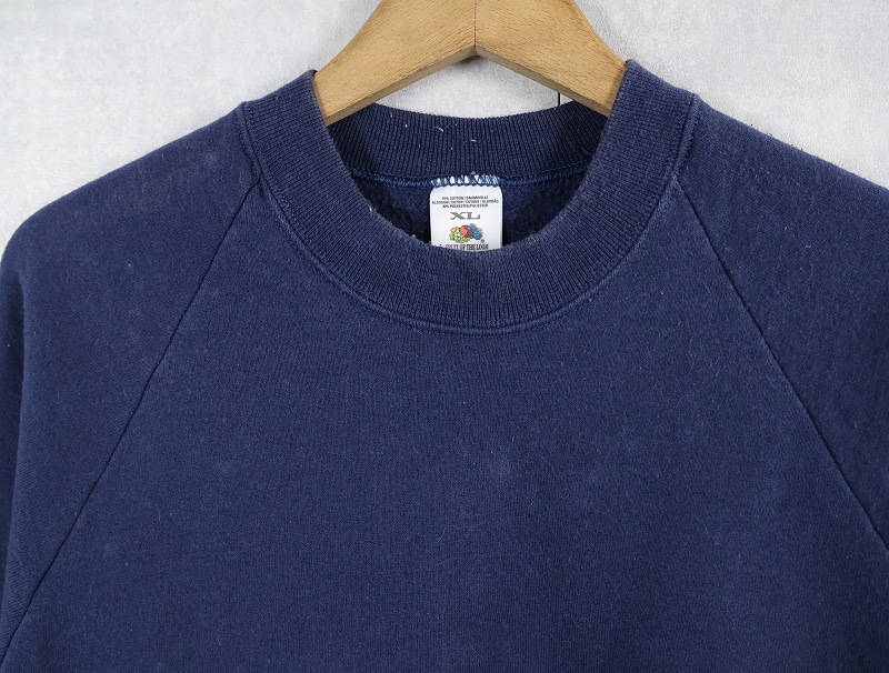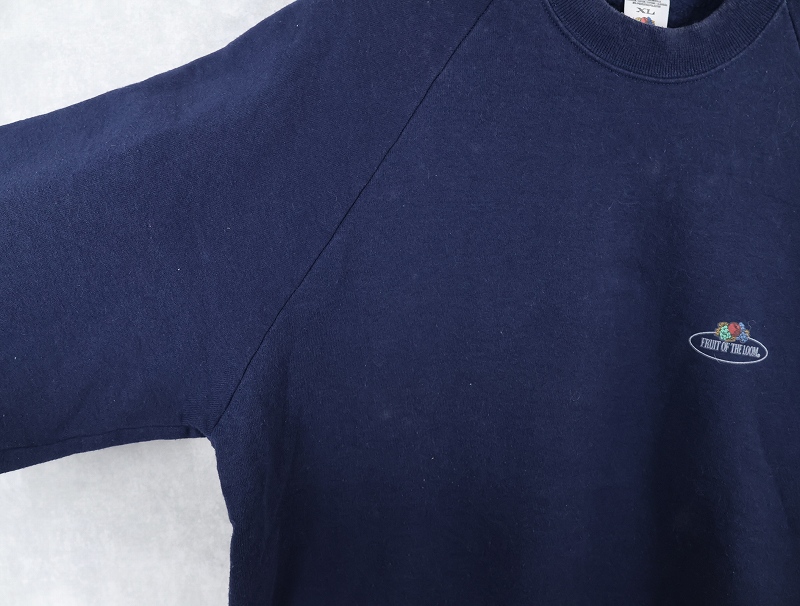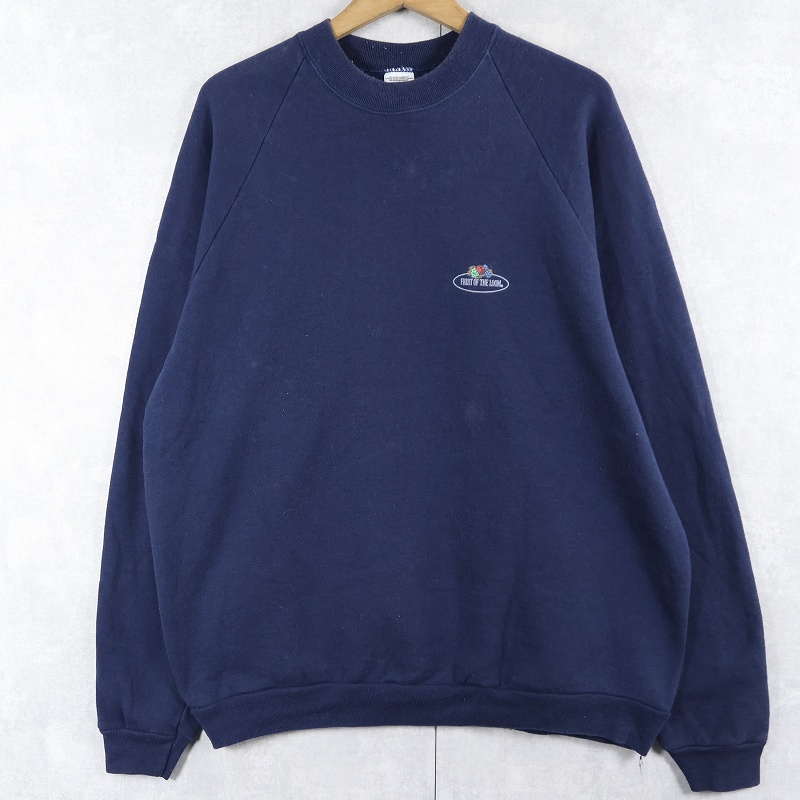 90's FRUIT OF THE LOOM USA製 ロゴプリント ラグランスウェット NAVY XL [160542]