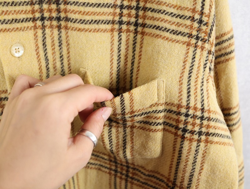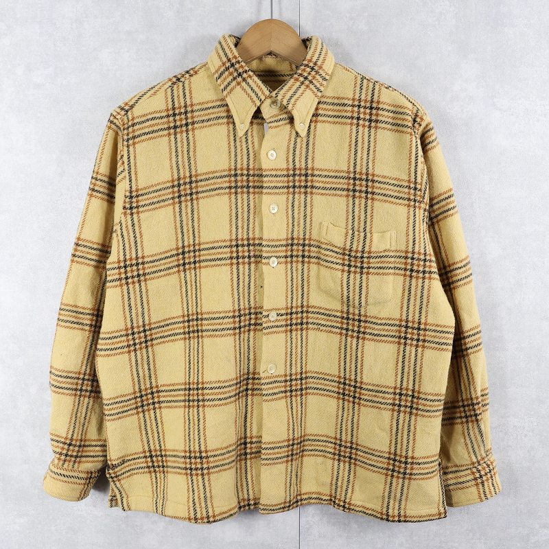60's チェック柄 3点留めウールシャツ SIZE16 1/2-17 [160582]