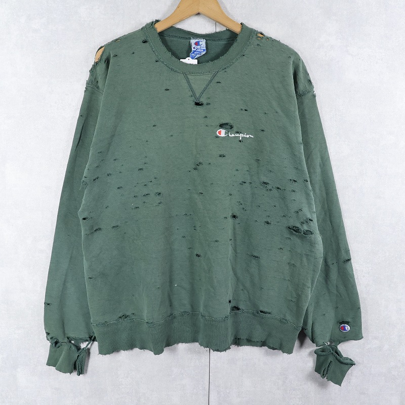 80〜90's Champion USA製 青刺繍タグ 後期 前V ロゴ刺繍 フェードスウェット L [160593]