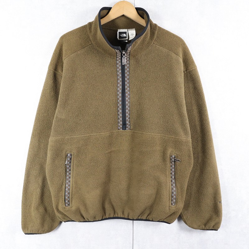 THE NORTH FACE USA製 ロゴ刺繡 チロリアンテープ ハーフジップフリースジャケット L [160600]
