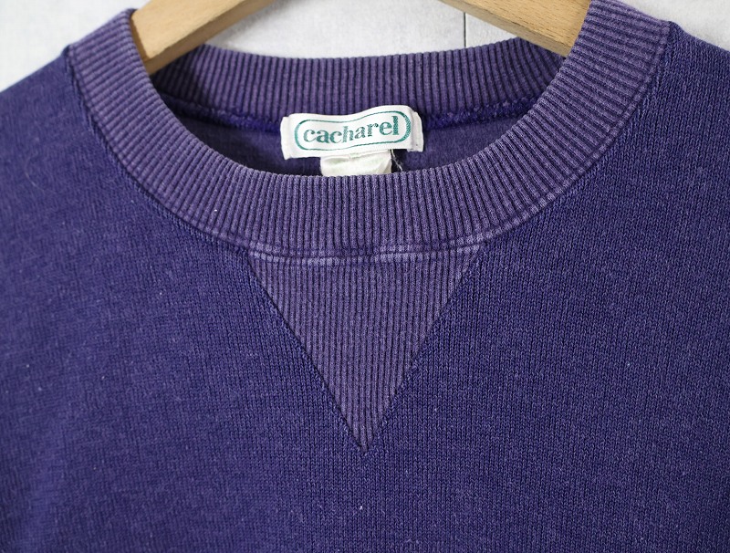 70〜80's cacharel 前V ポリエステル×コットンスウェット NAVY XL [160615]