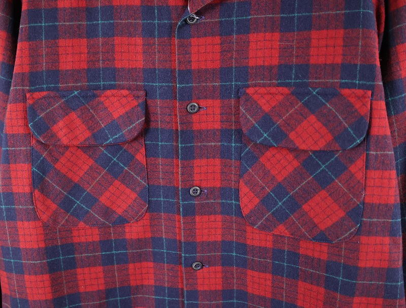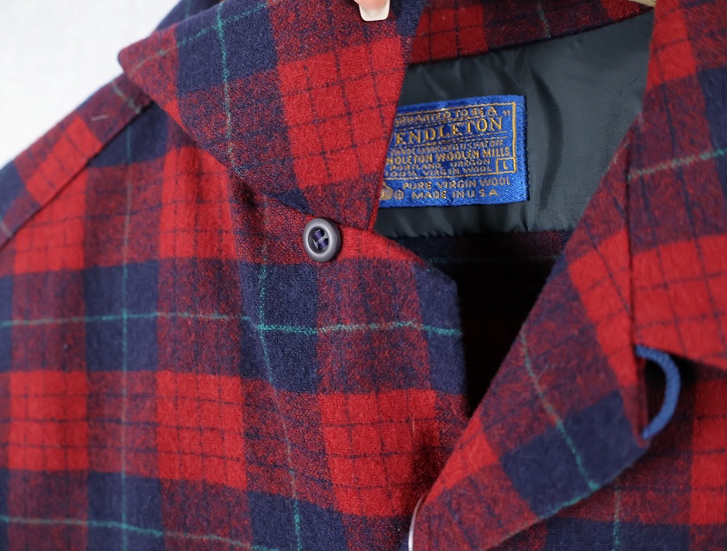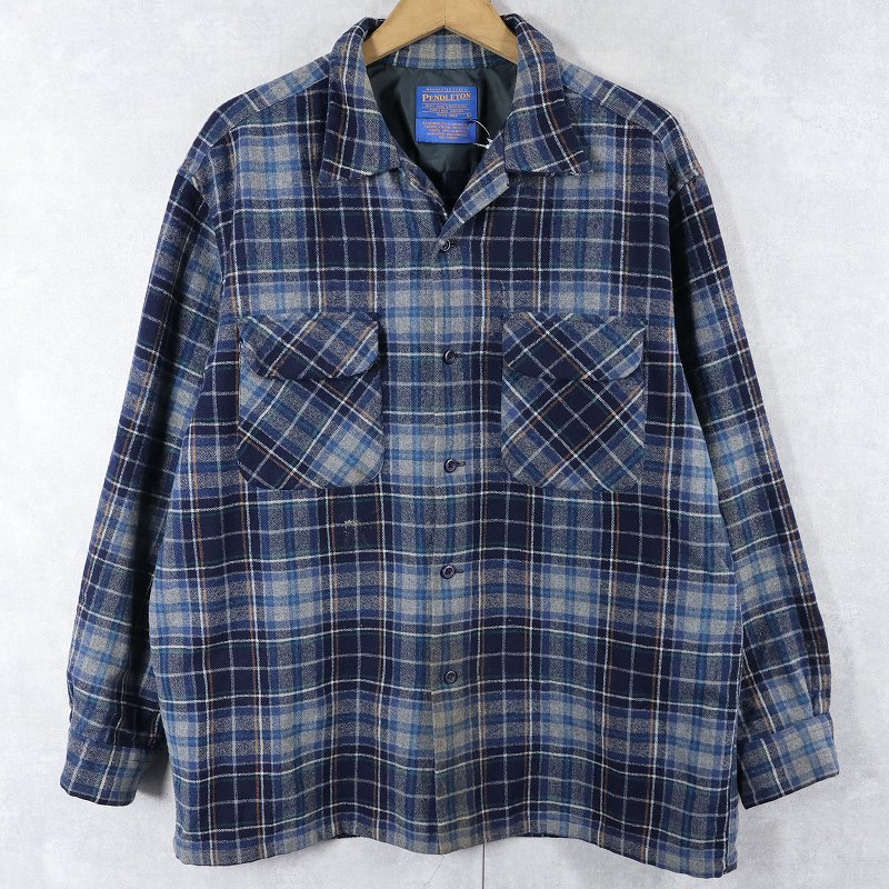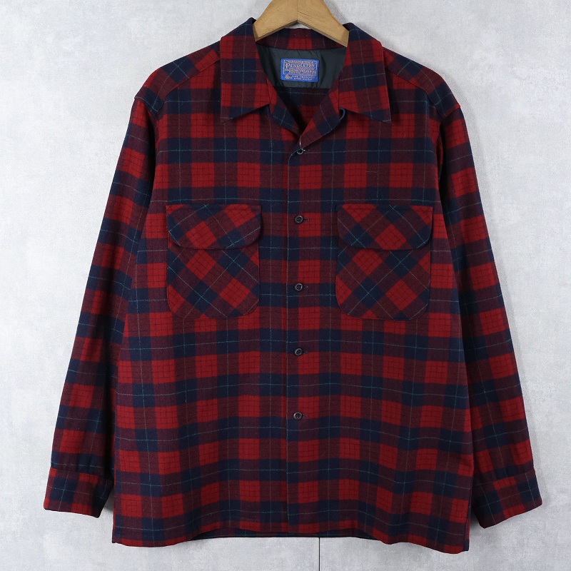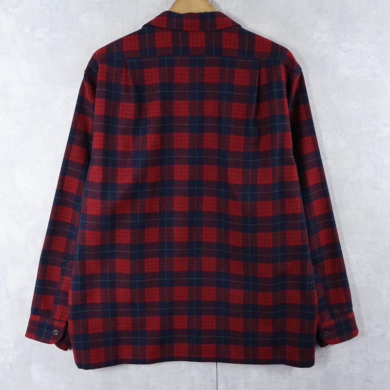 70's PENDLETON チェック柄 ウールオープンカラーシャツ L [160624]