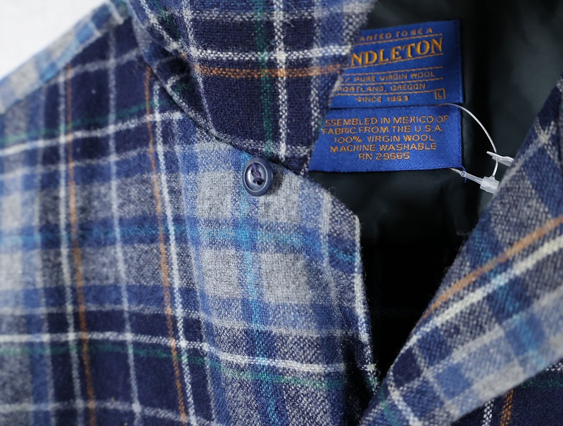 90's PENDLETON チェック柄 ウールオープンカラーシャツ L [160625]
