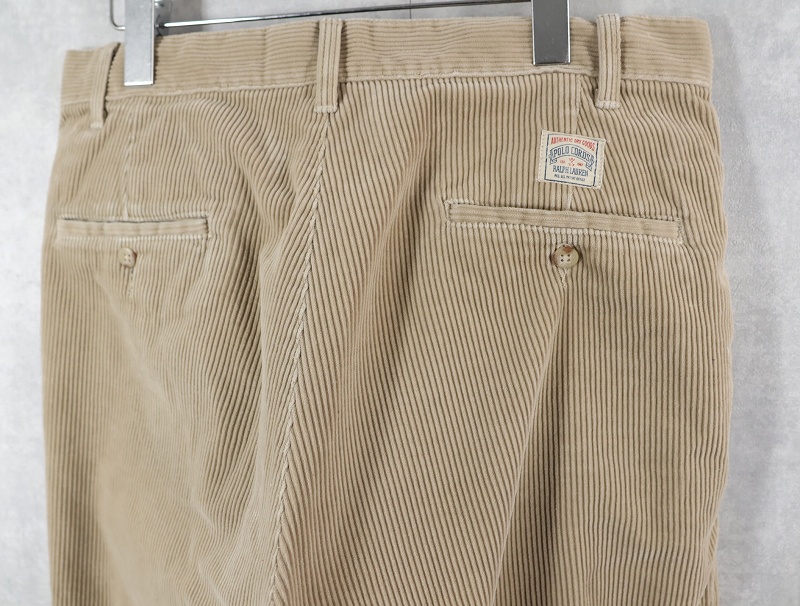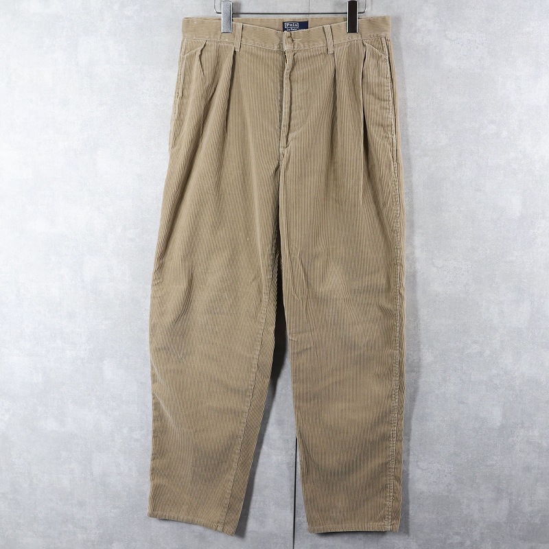 90's POLO Ralph Lauren "POLO CORDS" USA製 2タック 太畝コーデュロイパンツ W33 [160640]
