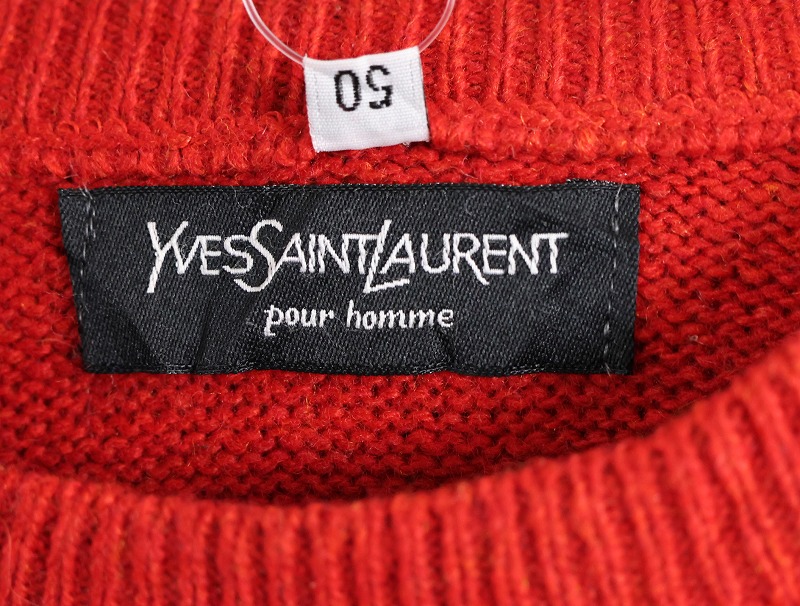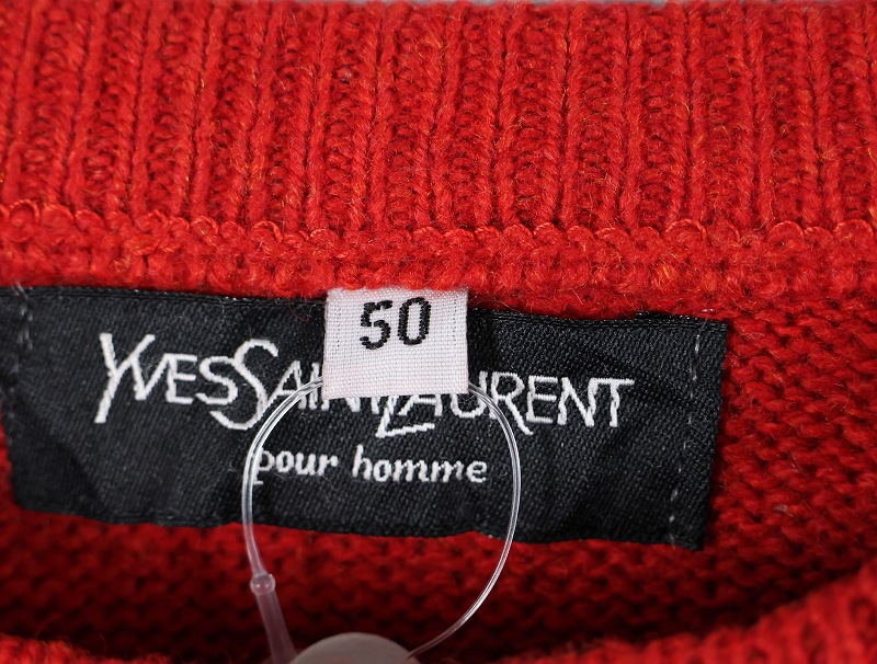 80's Yves Saint-Laurent pour homme ロゴ刺繍 ニットセーター SIZE50 [160652]