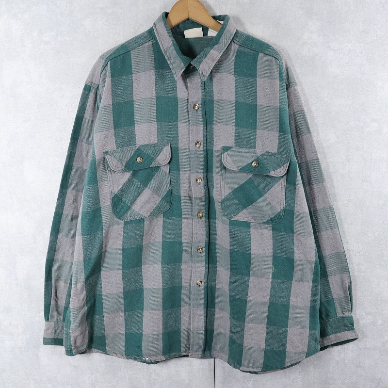 90's FIVE BROTHER バッファローチェック柄 ヘビーネルシャツ 2XL [160666]