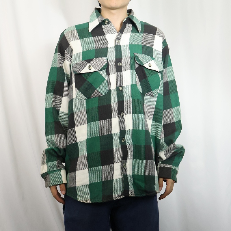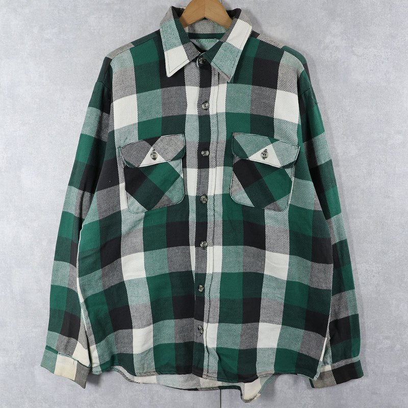 80〜90's CLYDESDALE ブロックチェック柄 ヘビーネルシャツ [160667]