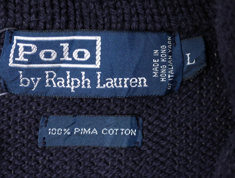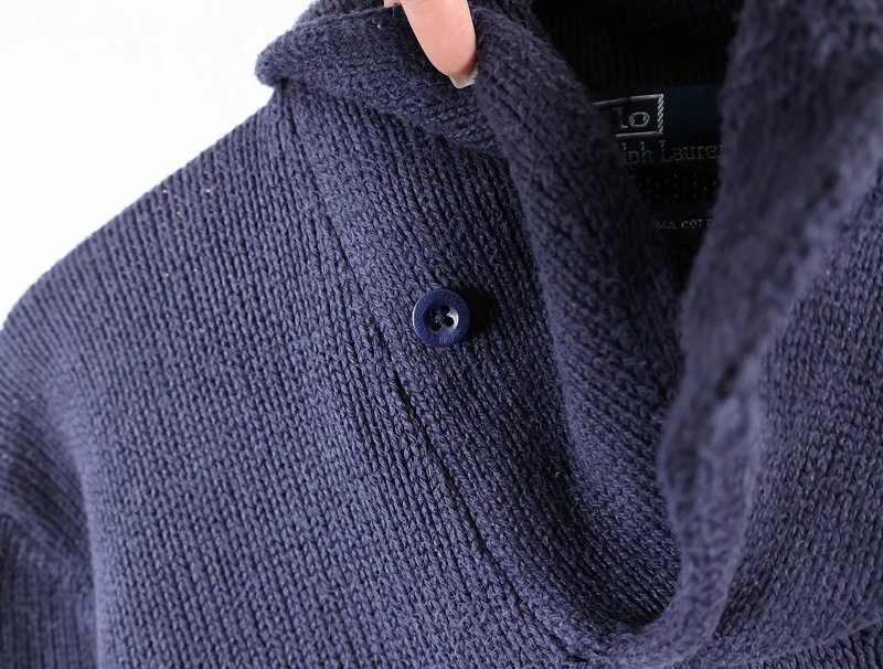 POLO Ralph Lauren "PIMA COTTON" ショールカラー コットンニットセーター NAVY L [160669]