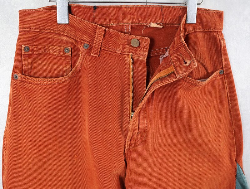 90's Levi's "DEAD BEAR" ワッペン付き 切り替えデザイン カラーデニムパンツ W32 [160674]