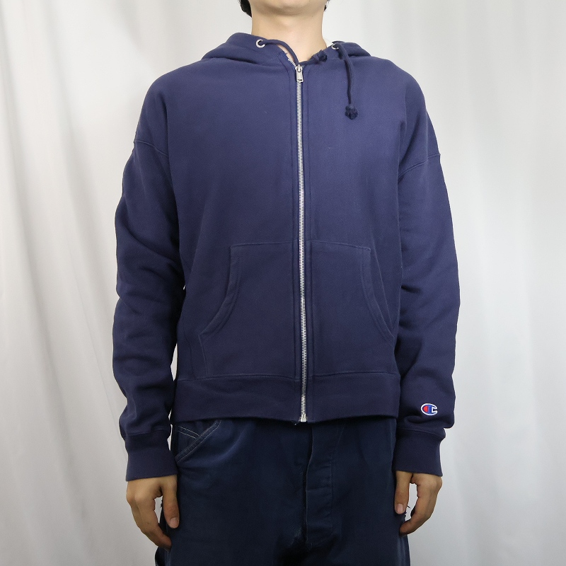 Champion REVERSE WEAVE 無地 スウェットジップパーカー NAVY L [160686]