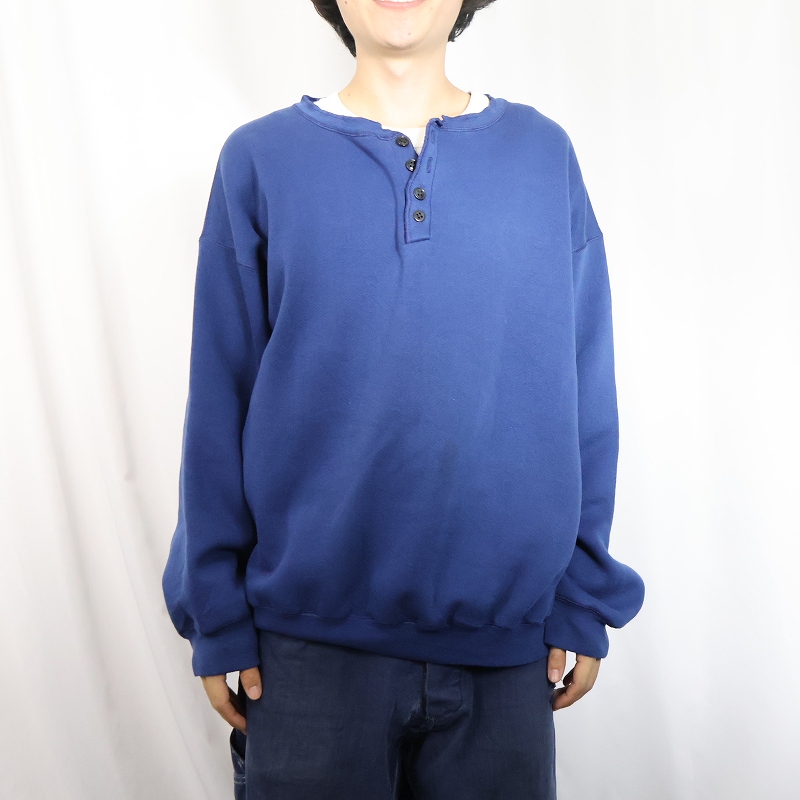 90's TULTEX USA製 ヘンリーネック 無地スウェット XL [160694]