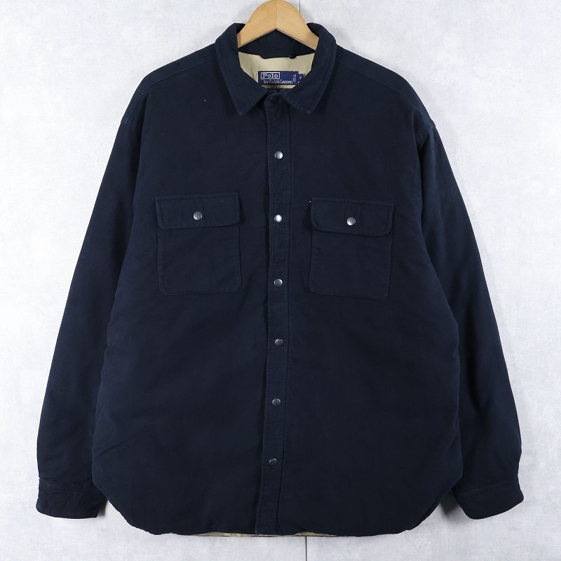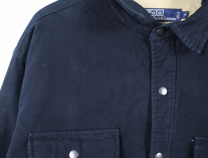 90's POLO Ralph Lauren シャモアクロス ダウンシャツジャケット NAVY M [160711]