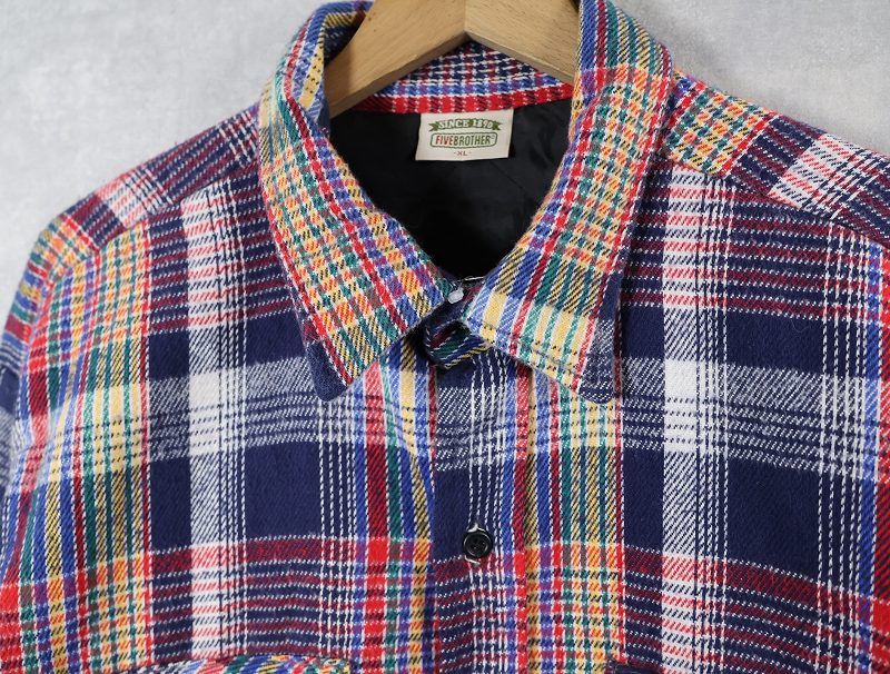 90's FIVE BROTHER USA製 チェック柄 キルティングライナー ヘビーネルシャツXL [160719]