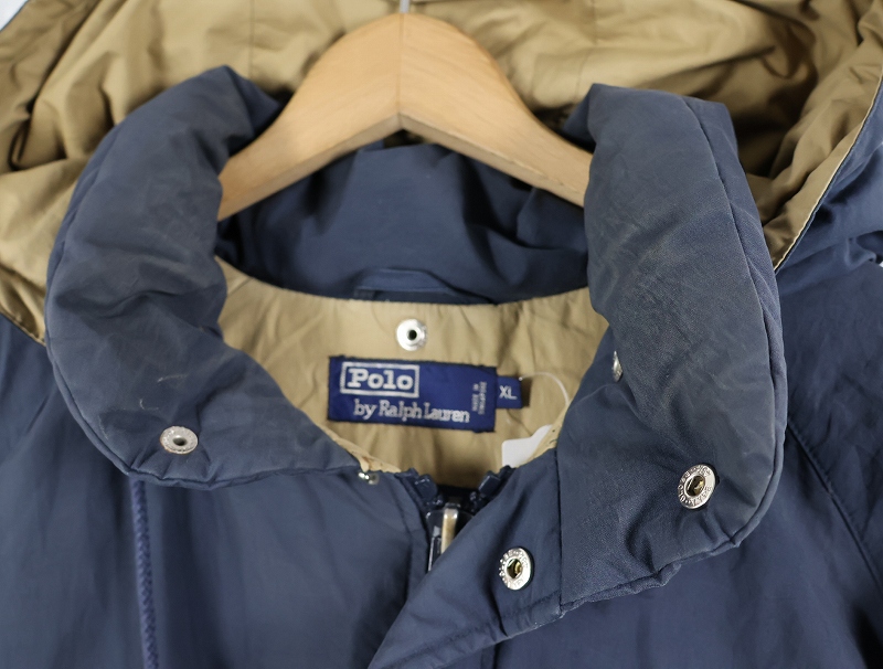 90's POLO Ralph Lauren フード付き ダウンジャケット NAVY XL [160725]