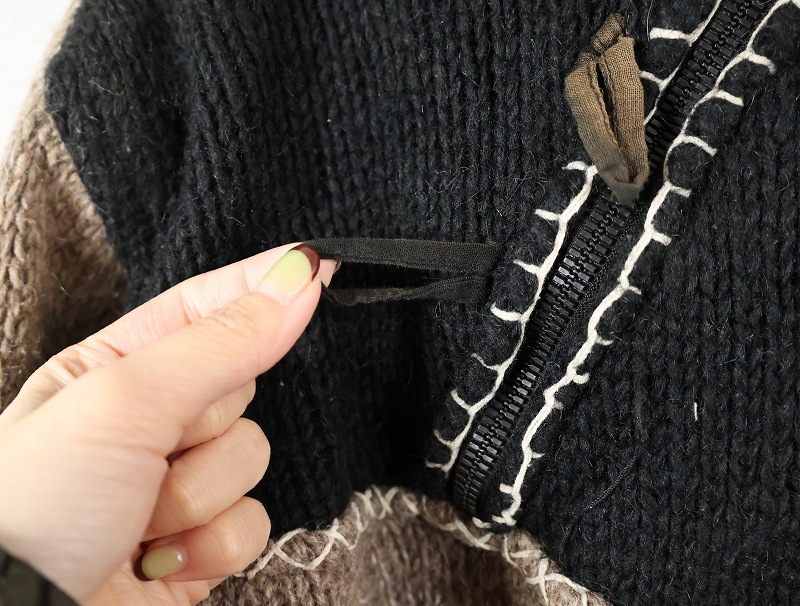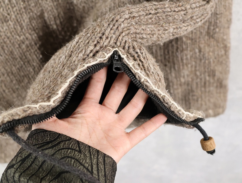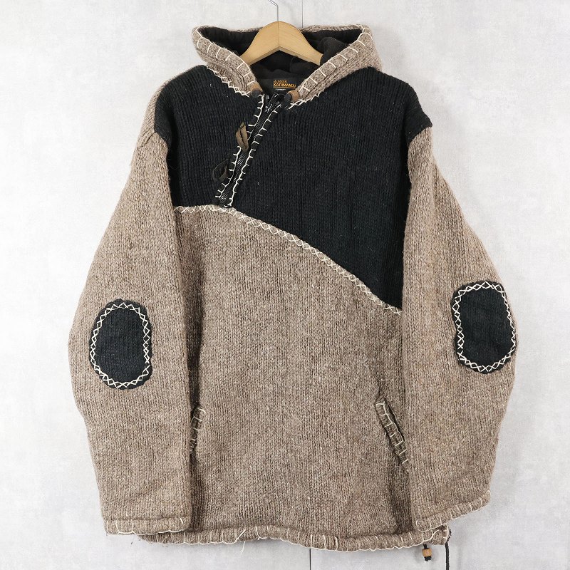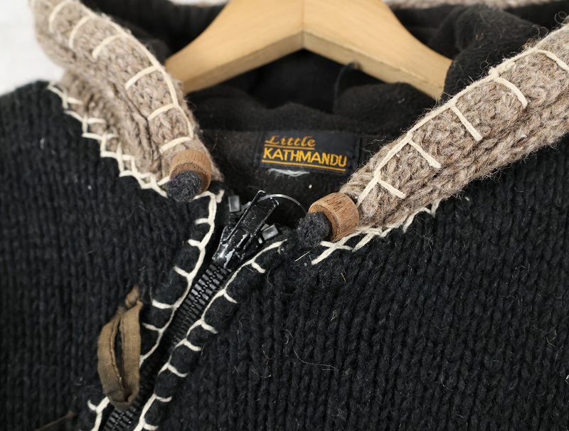 Little KATHMANDU NEPAL製 裏フリース ハーフジップ ウールニットパーカー [160759]