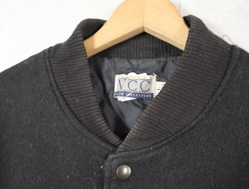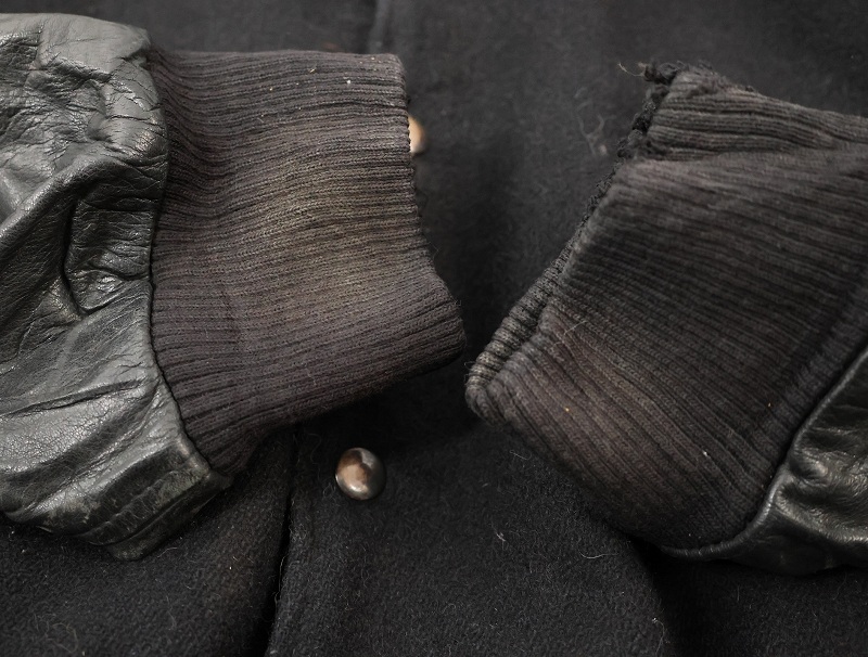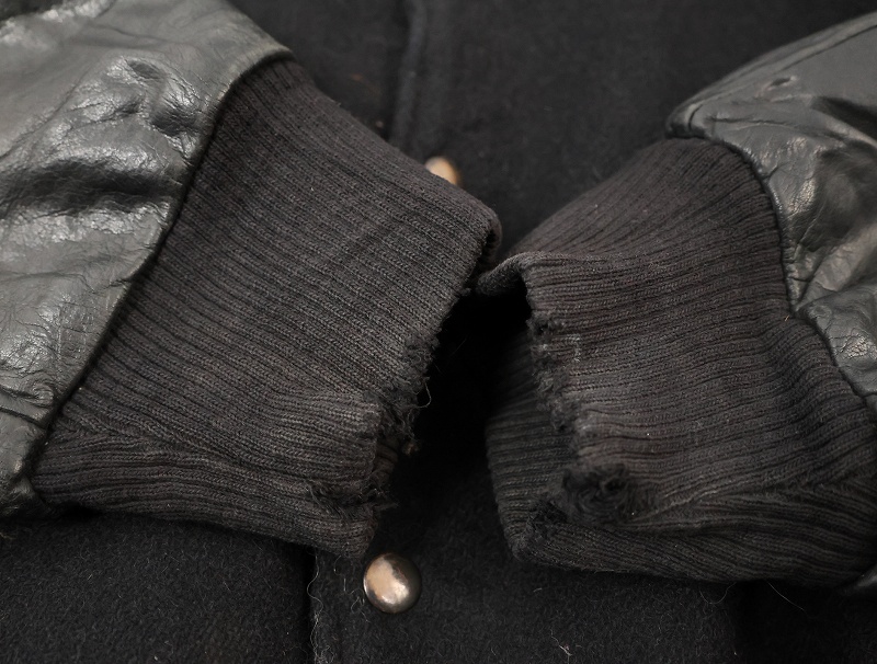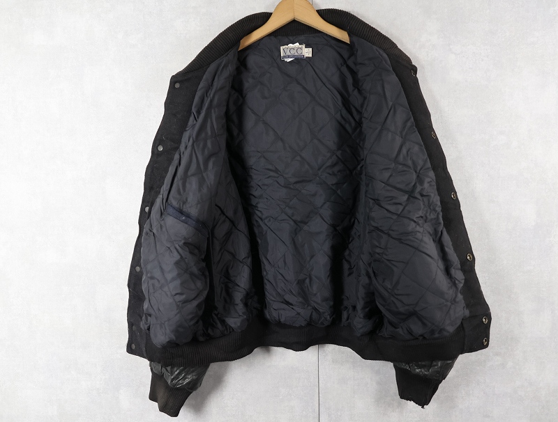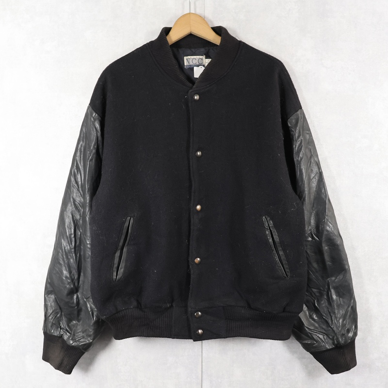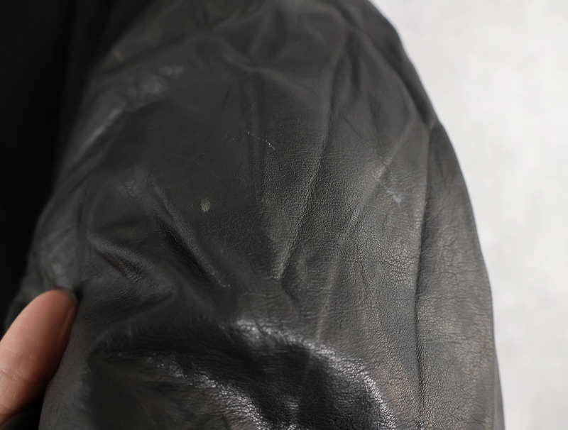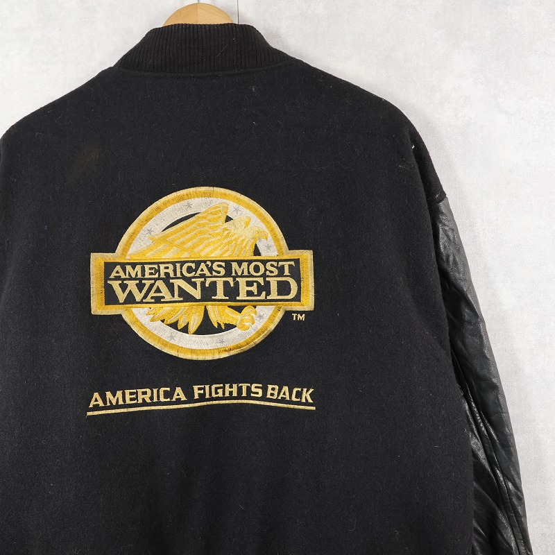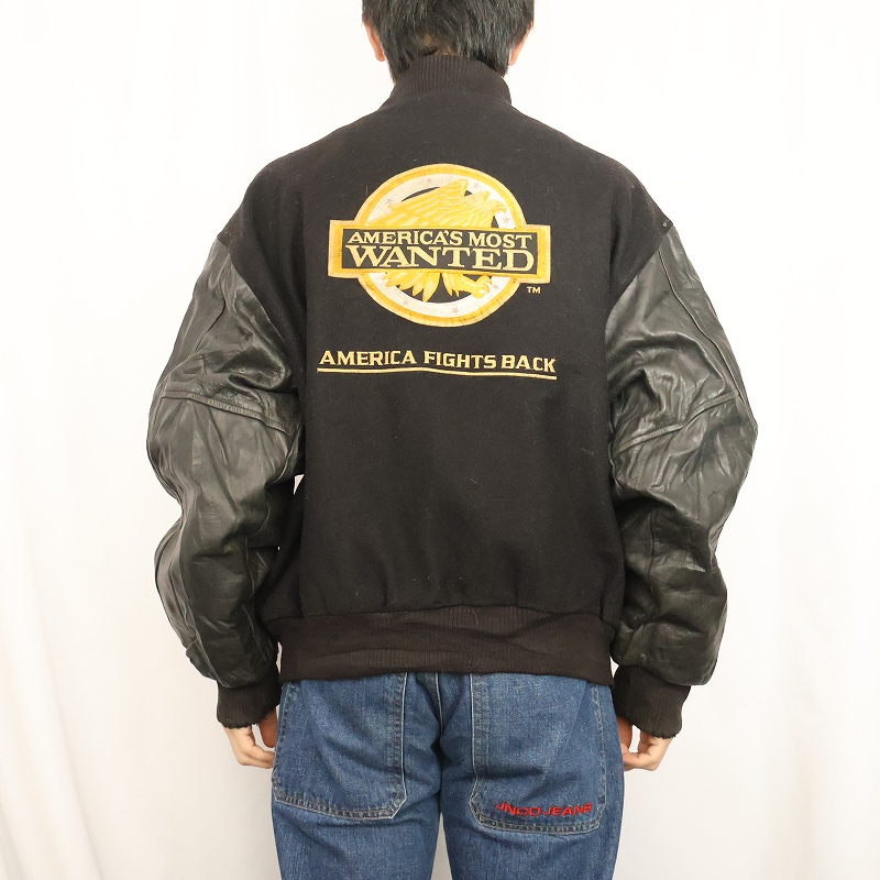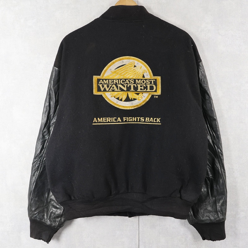 90's America's Most Wanted USA製 テレビ番組 レザー×メルトンウール スタジャン BLACK L [160763]