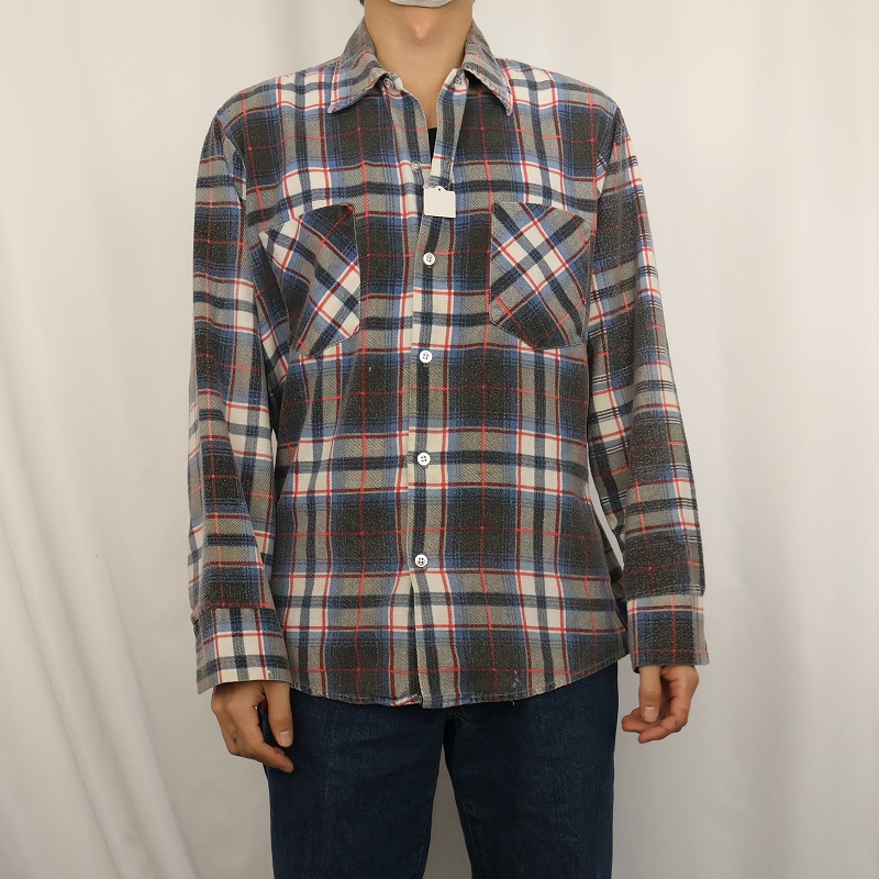 70〜80's Prest-Rite チェック柄 プリントネルシャツ [160768]