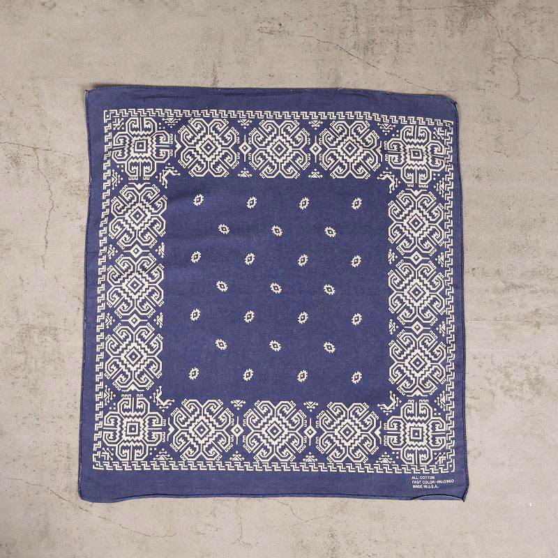 70's FAST COLOR USA製 ライトニング柄 バンダナ NAVY [160771]