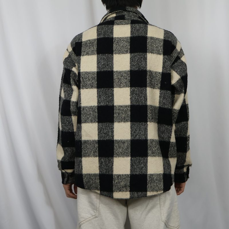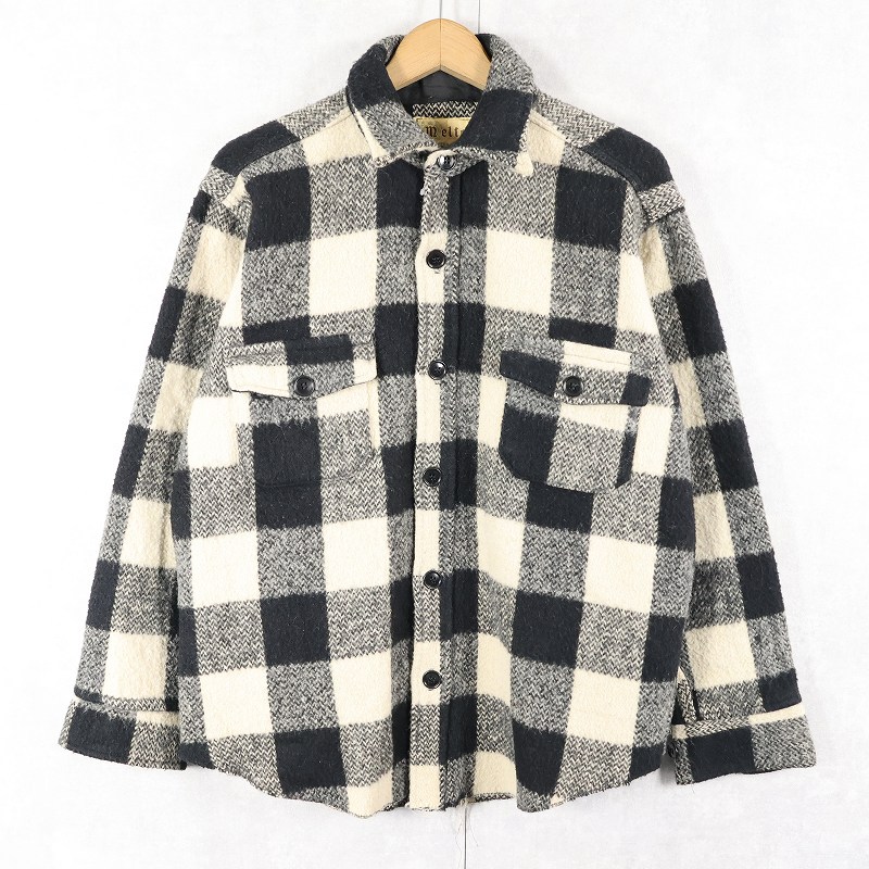 90's MELTON USA製 バッファローチェック柄 ウールシャツジャケット L [160824]