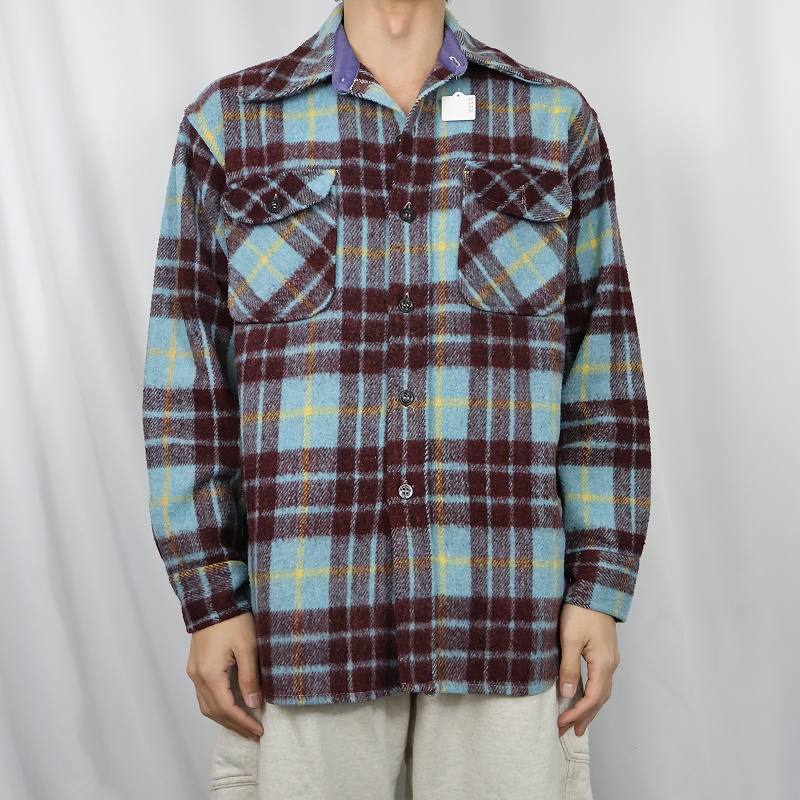 70〜80's Roundtable by King Arthur チェック柄 ウール CPOシャツジャケット M [160826]