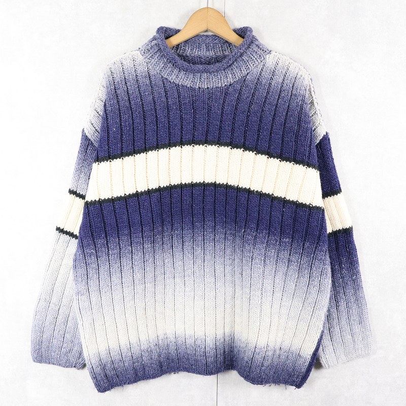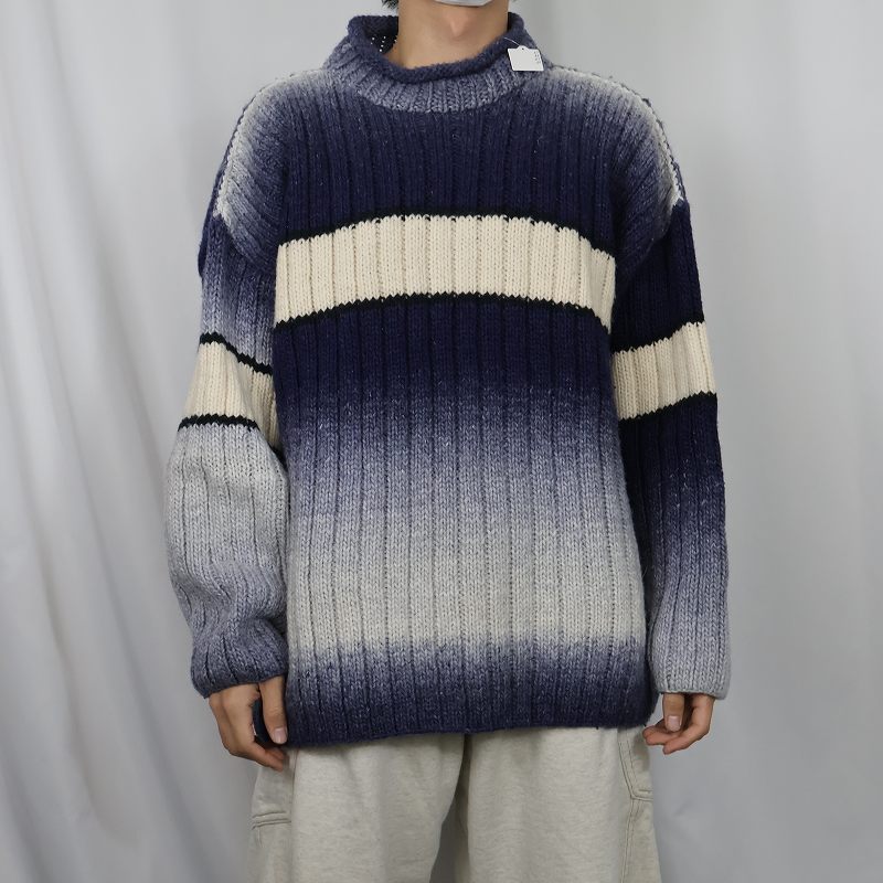 切り替えデザイン ロールネック ウールニットセーター [160845]