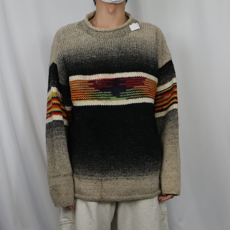 ネイティブ柄 ロールネックウールニットセーター [160849]