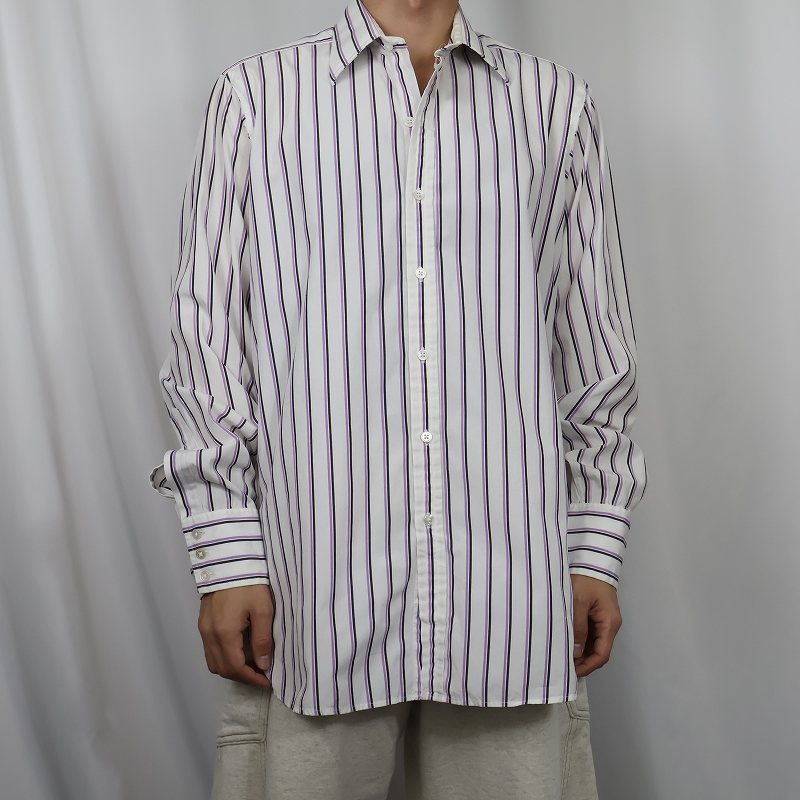 90's Turnbull&Asser ENGLAND製 ストライプ柄 コットンシャツ [160855]