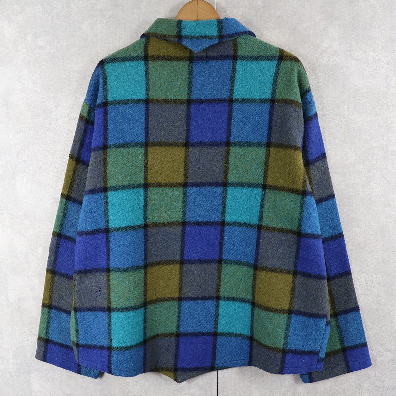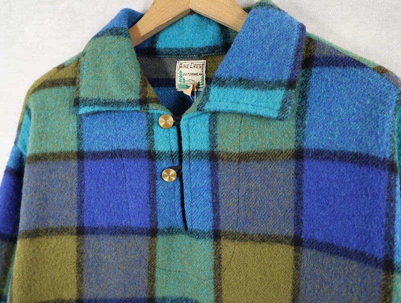 60's〜 PINE CREST ブロックチェック柄 ウールプルオーバーシャツ L [160892]