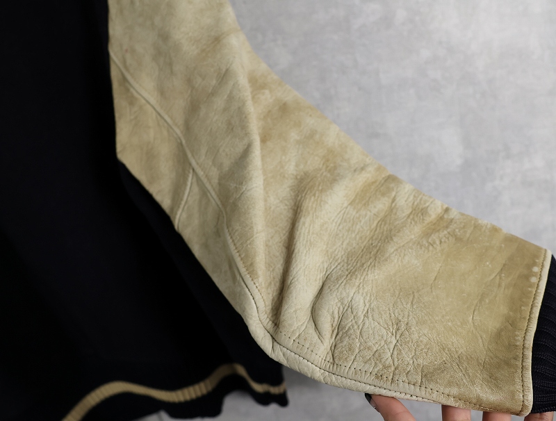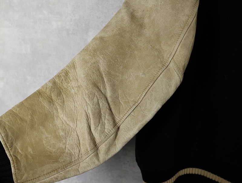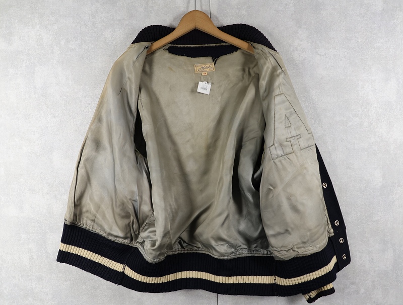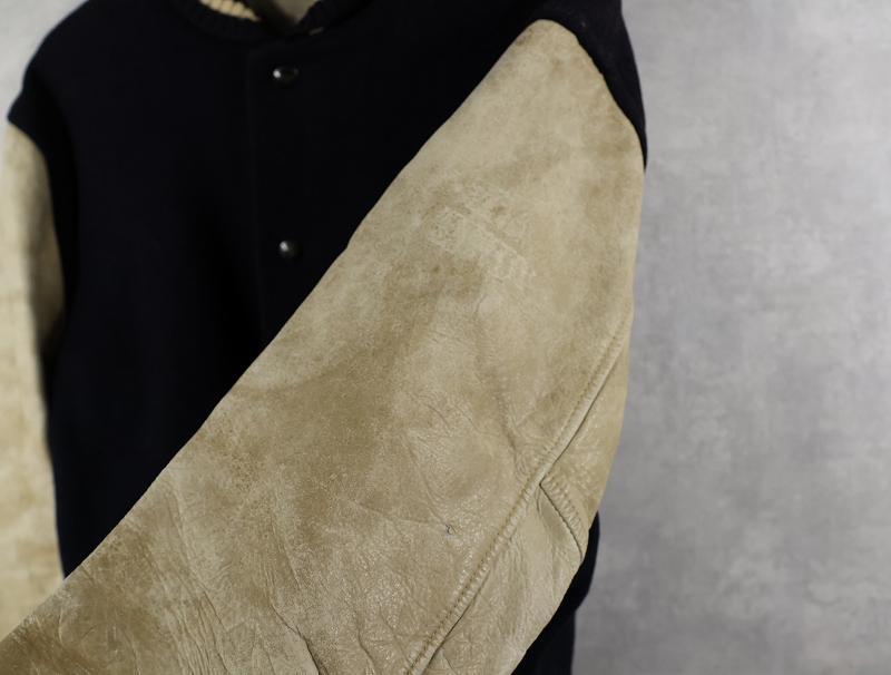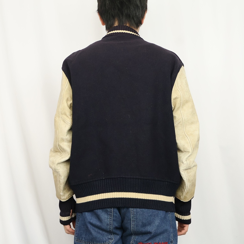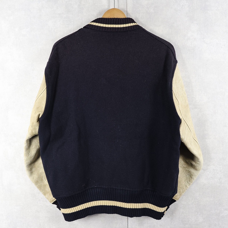 50's H.L.Whiting Co. USA製 パッチ付き レザー×メルトンウールスタジャン NAVY SIZE44 [160897]