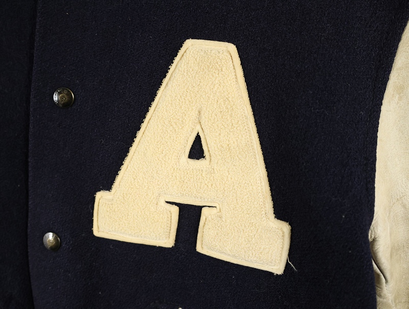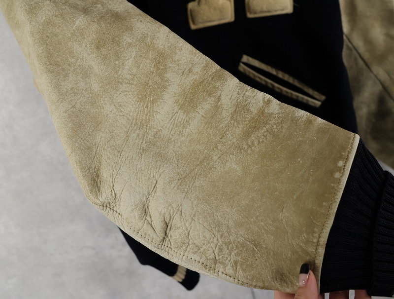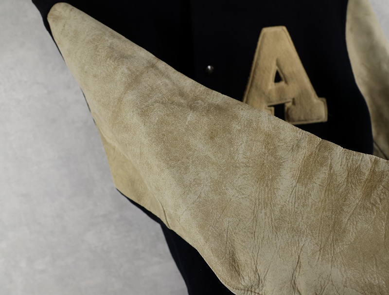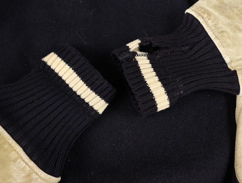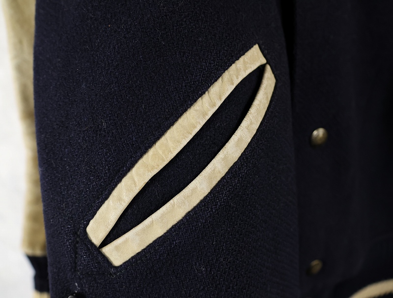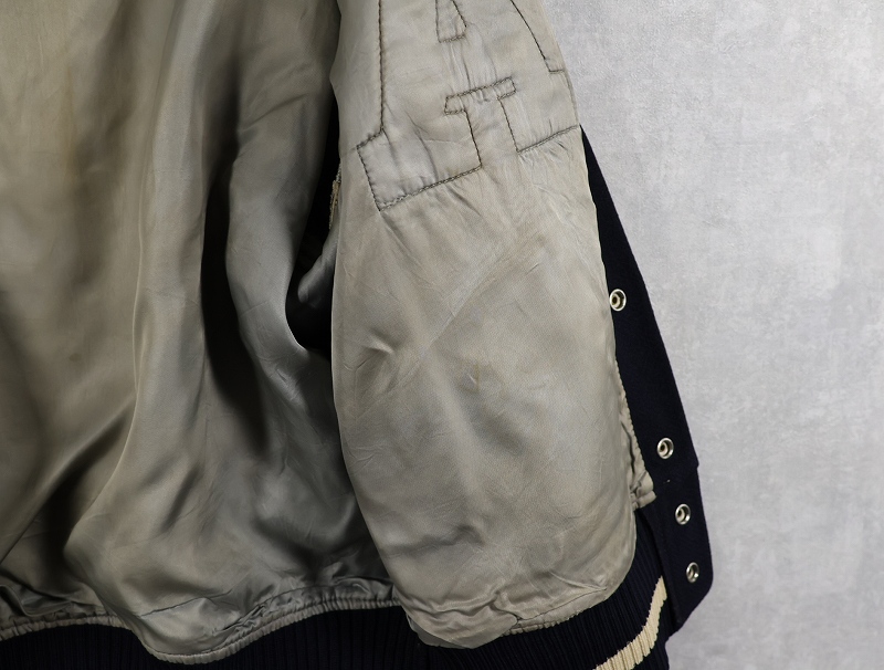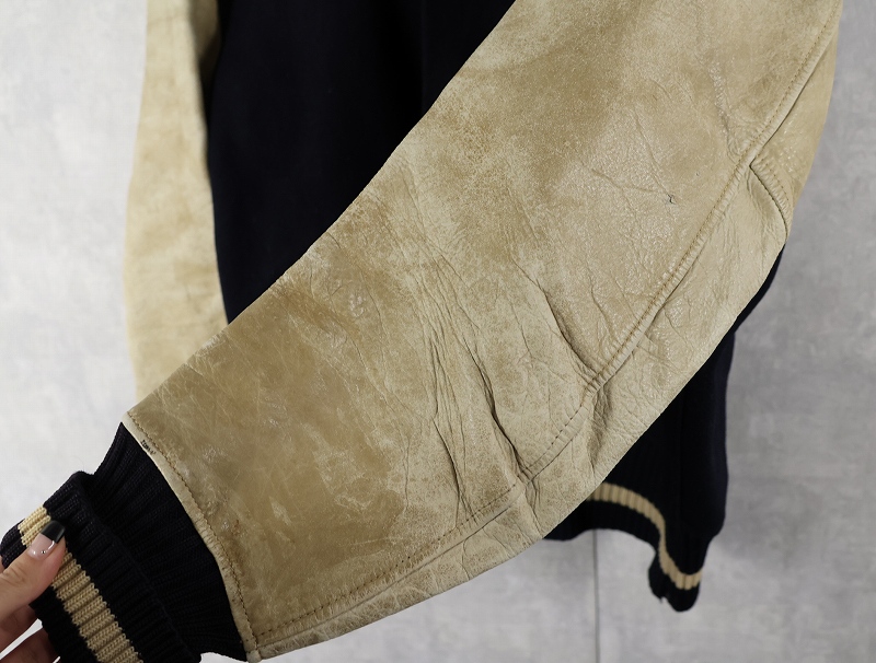50's H.L.Whiting Co. USA製 パッチ付き レザー×メルトンウールスタジャン NAVY SIZE44 [160897]