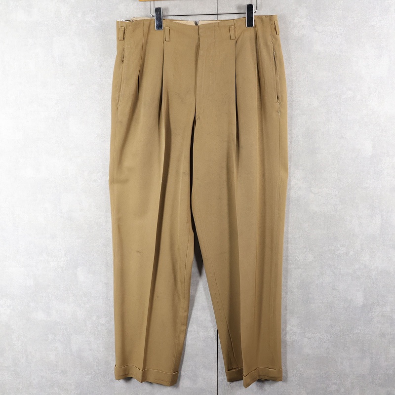 40〜50's コの字エンド 2タック ウールスラックス W31 [160899]