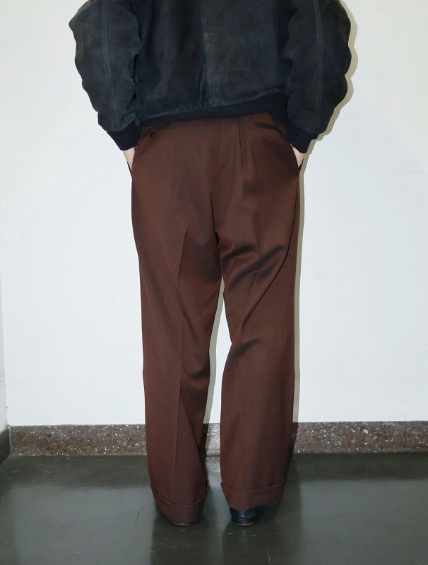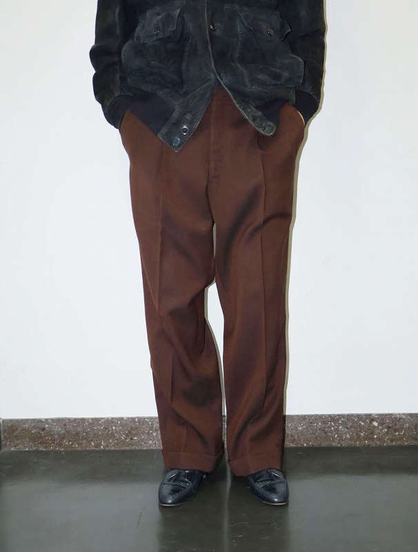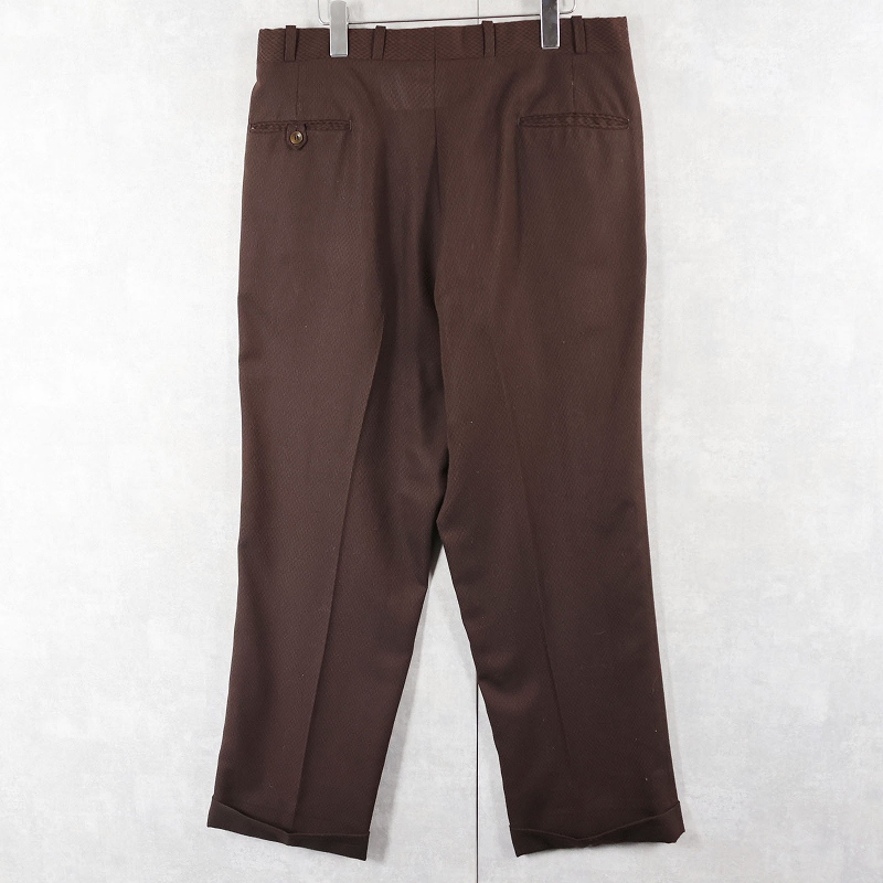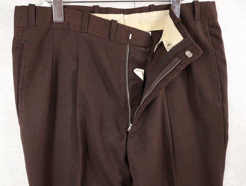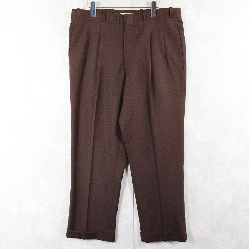 50's〜 チェッカー柄 2タック スラックス BROWN W35 [160902]
