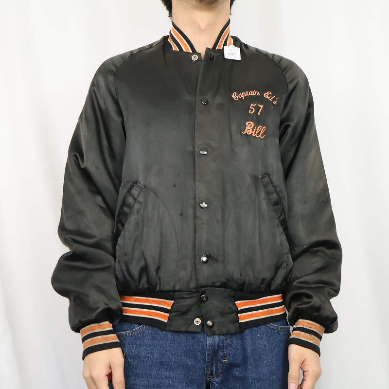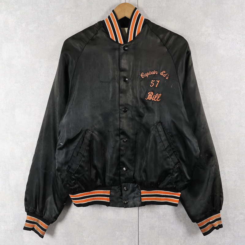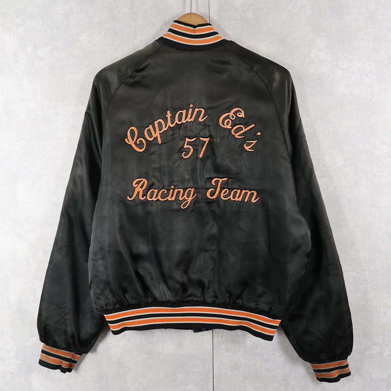 〜70's "Captain Ed's 57 Racing Jeam" 中綿入り サテンレーシングジャケット BLACK [160912]