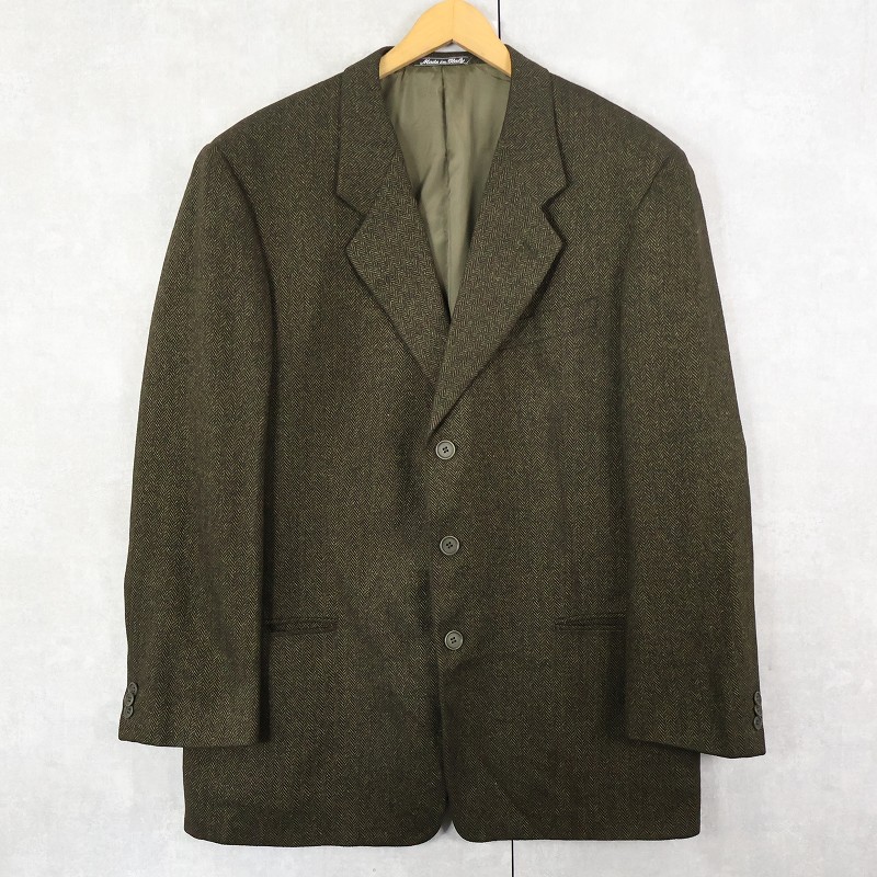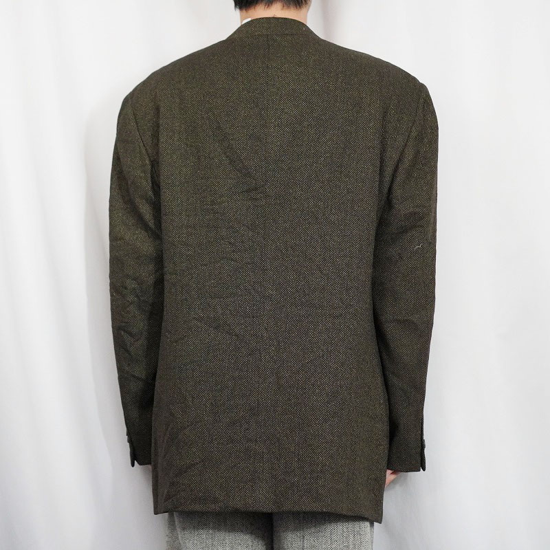 90's GIORGIO ARMANI ITALY製 ヘリンボーン織り ウール×シルク テーラードジャケット SIZE42 [160926]