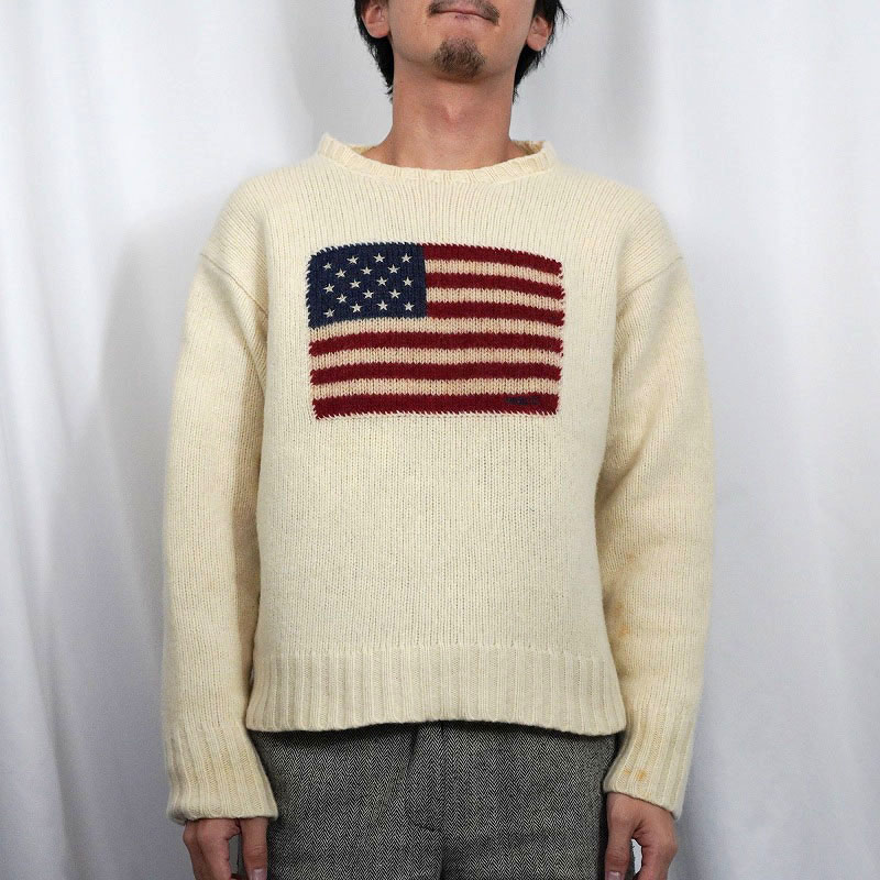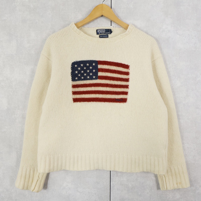 90's POLO Ralph Lauren 星条旗柄 ウールニットセーター M [160939]