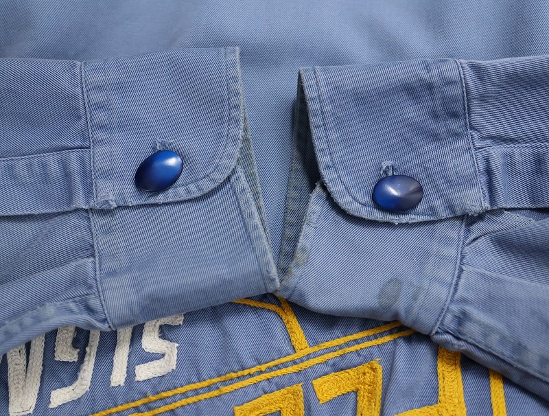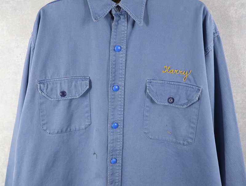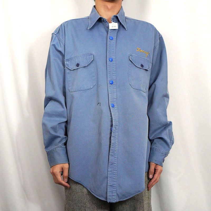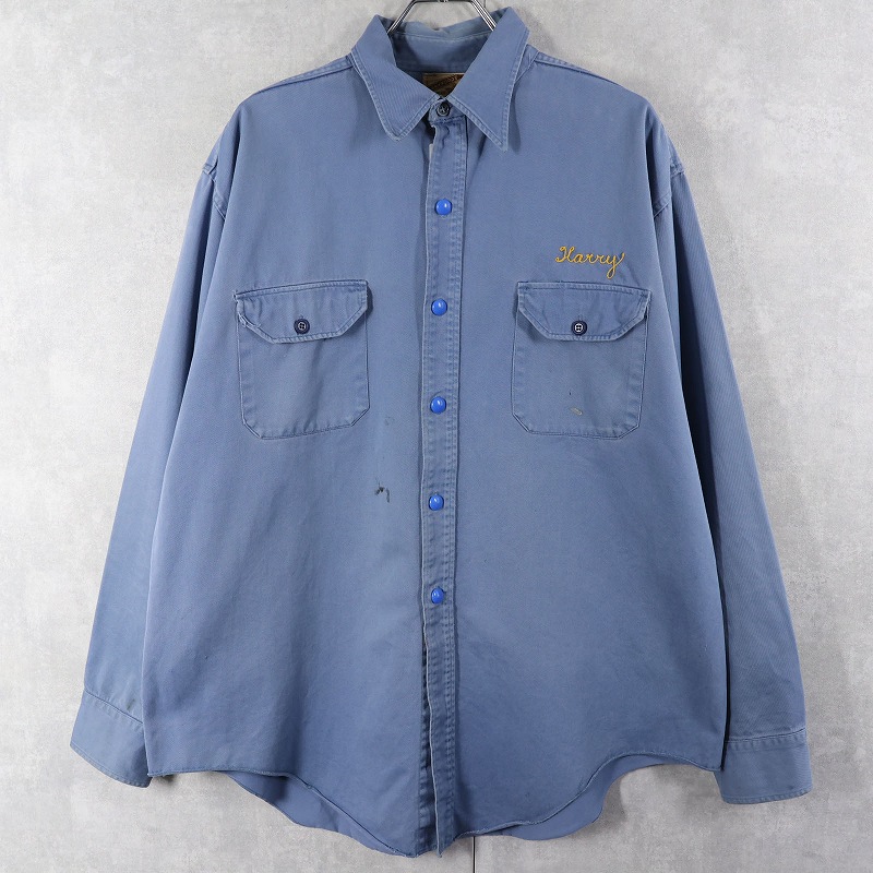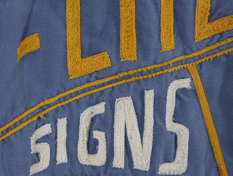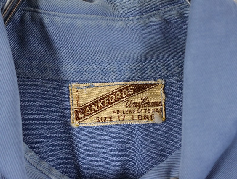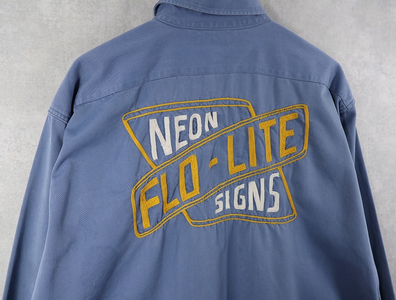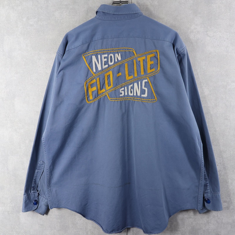 50's LANKFORDS "NEON FLO-LITE SIGNS" チェーン刺繍 コットンギャバジン ワークシャツ SIZE17 LONG [160954]