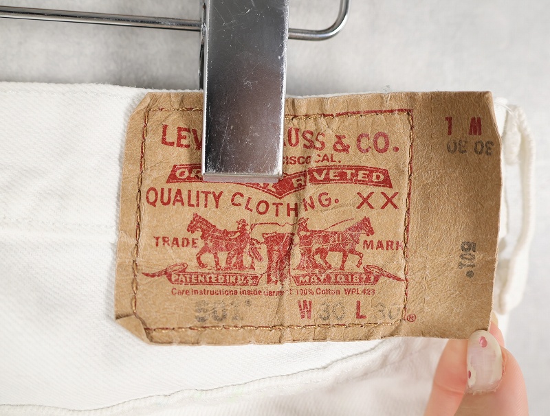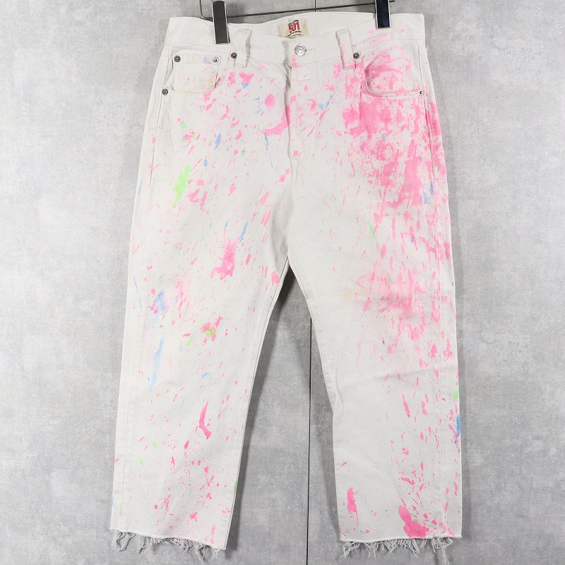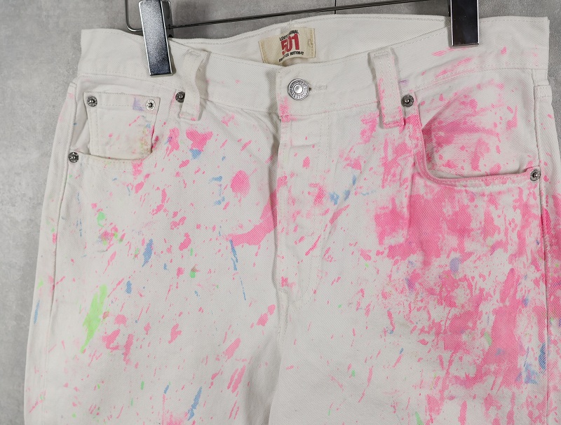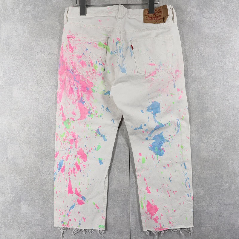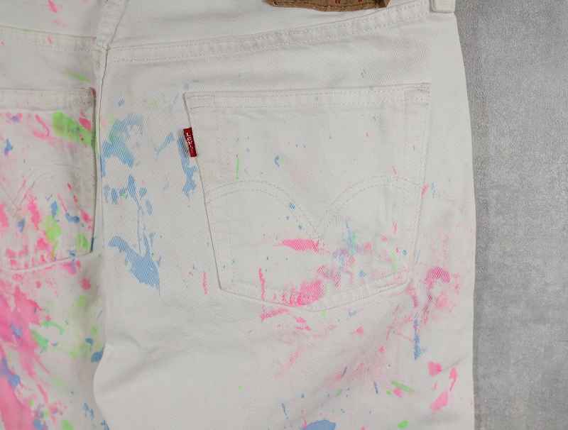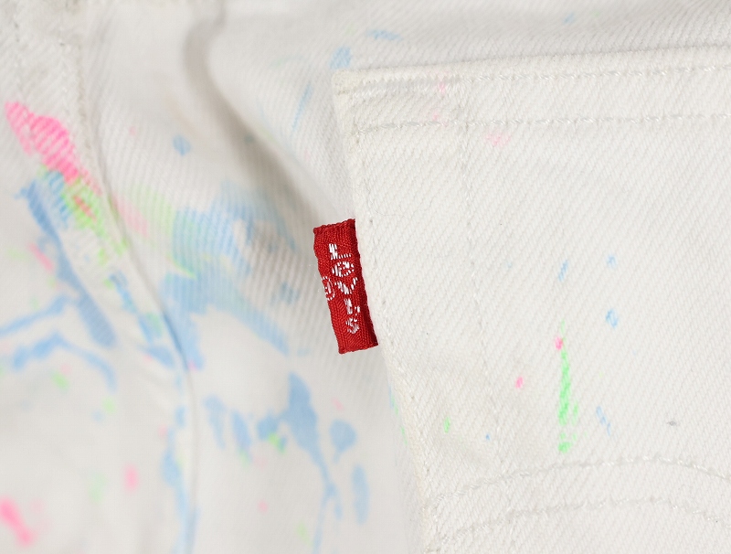 Levi's 501 ペンキペイント カットオフ ホワイトデニムパンツ W32 [160968]
